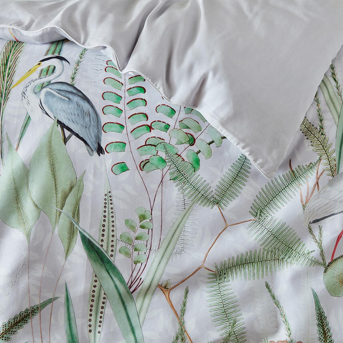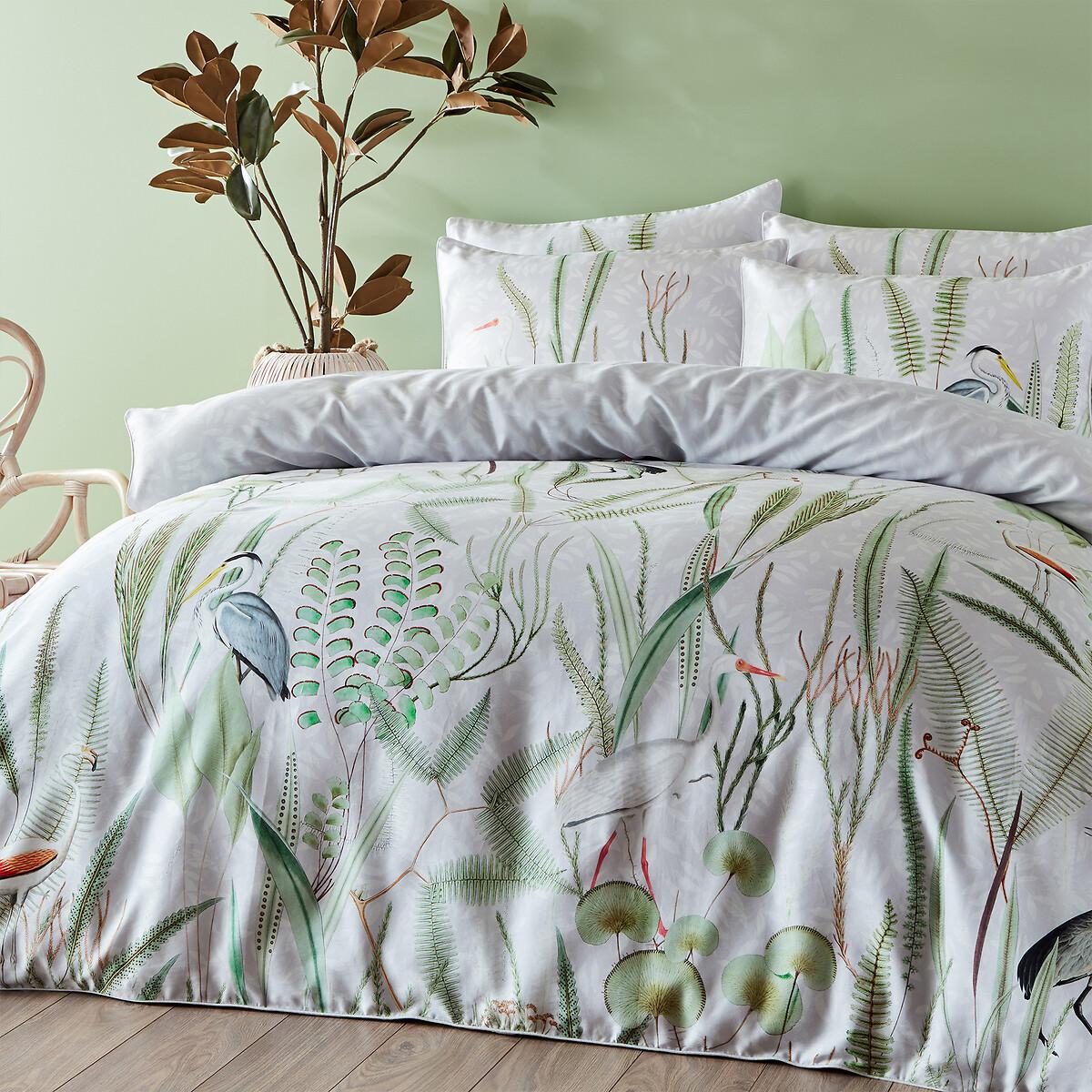 Add serenity to your home with exotic and majestic birds gliding through aquatic foliage. With hints of Japanese inspiration this design is soothing and harmonious, featuring a soft palette of tranquil greens and greys. This duvet cover set has a plain, tonal colour reverse and a complimenting piped edge adding a seamless finish. Composition:100% Cotton. Please note that the Single Set comprises of a Duvet Cover and 1 pillowcase, the Double, King and Super King all come with a Duvet Cover and 2 Pillowcases. This product will be dispatched by one of our trusted suppliers. You’ll be contacted by their selected courier about your delivery.