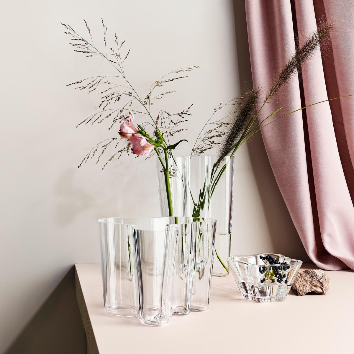 The Savoy Vase, also known as the Aalto Vase, was designed in 1936 by Alvar Aalto (1898 – 1976), Finland's most famous architect and designer. He’s also one of the most important pioneers of organic design. A true design icon, this glass vase characterised by its organic shapes has become a classic of Finnish design. It’s one of the most famous glass objects in the world and Iittala's most iconic series. The sinuous shape of the Aalto vase alludes to the designer's last name: aalto means wave in Finnish. These rhythmic, asymmetrical lines express the quintessence of nature and announce the fluid shapes that would be the hallmark of Finnish post-war design. Alvar Aalto's series of glass vases won first prize in the 1936 Karhula-Iittala glass design competition, as well as the 1937 World's Fair in Paris. Compared to decorative objects of the time, the simple yet organic shape of this vase was a revolutionary statement. Each vase in the Alvar Aalto collection is hand-blown, hand-cut and polished at Iittala glassworks in Finland. The Aalto vase is available in a wide range of colours and sizes.