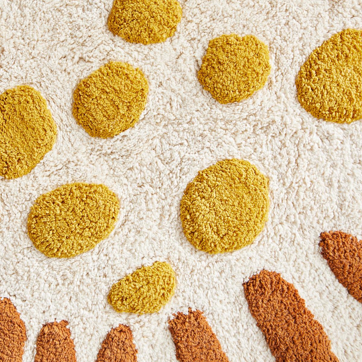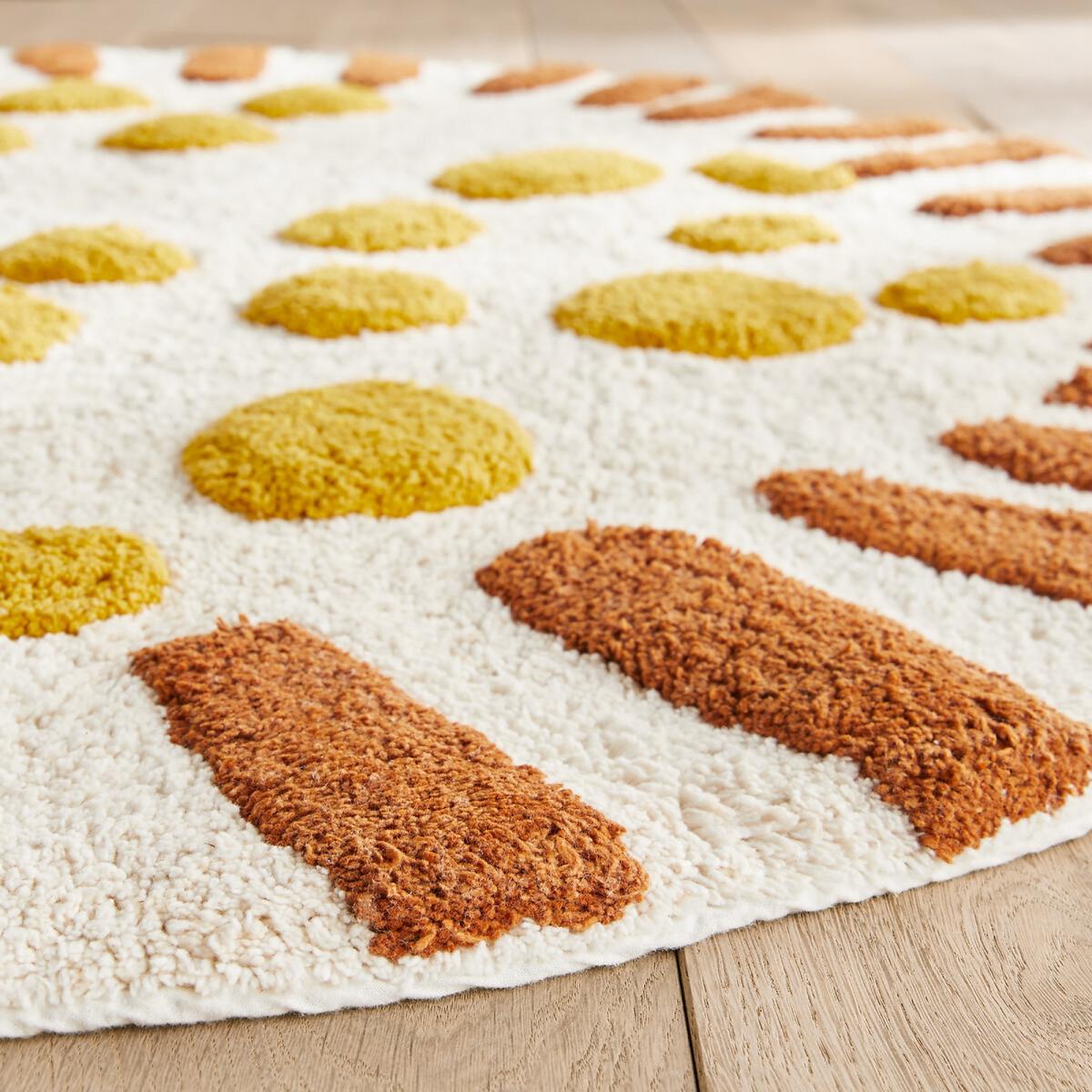 I love this round rug because of its playful yet neutral palette, making it easy to integrate into a variety of children's rooms. Its 100% organic cotton construction adds a soft, natural feel that’s perfect for little ones to crawl or sit on comfortably. It works particularly well in modern, Scandi, or boho interiors, adding a splash of colour without overwhelming the space. For styling, consider pairing it with simple, fuss-free furniture and cosy textiles in complementary colours, like mustard or terracotta, to create a warm and inviting atmosphere. To keep it looking its best, layer with washable, fade-resistant cushions or throws, and avoid placing it in high-traffic areas prone to heavy dirt to maintain its freshness.