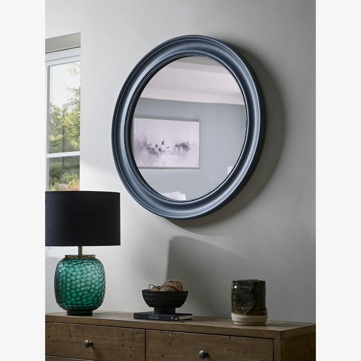 Create a soft finishing touch to any home with our Aaro Round Mirror. Dark, inky tones provide a welcome contrast to the curved shape, adding depth and dimension to open up your space.