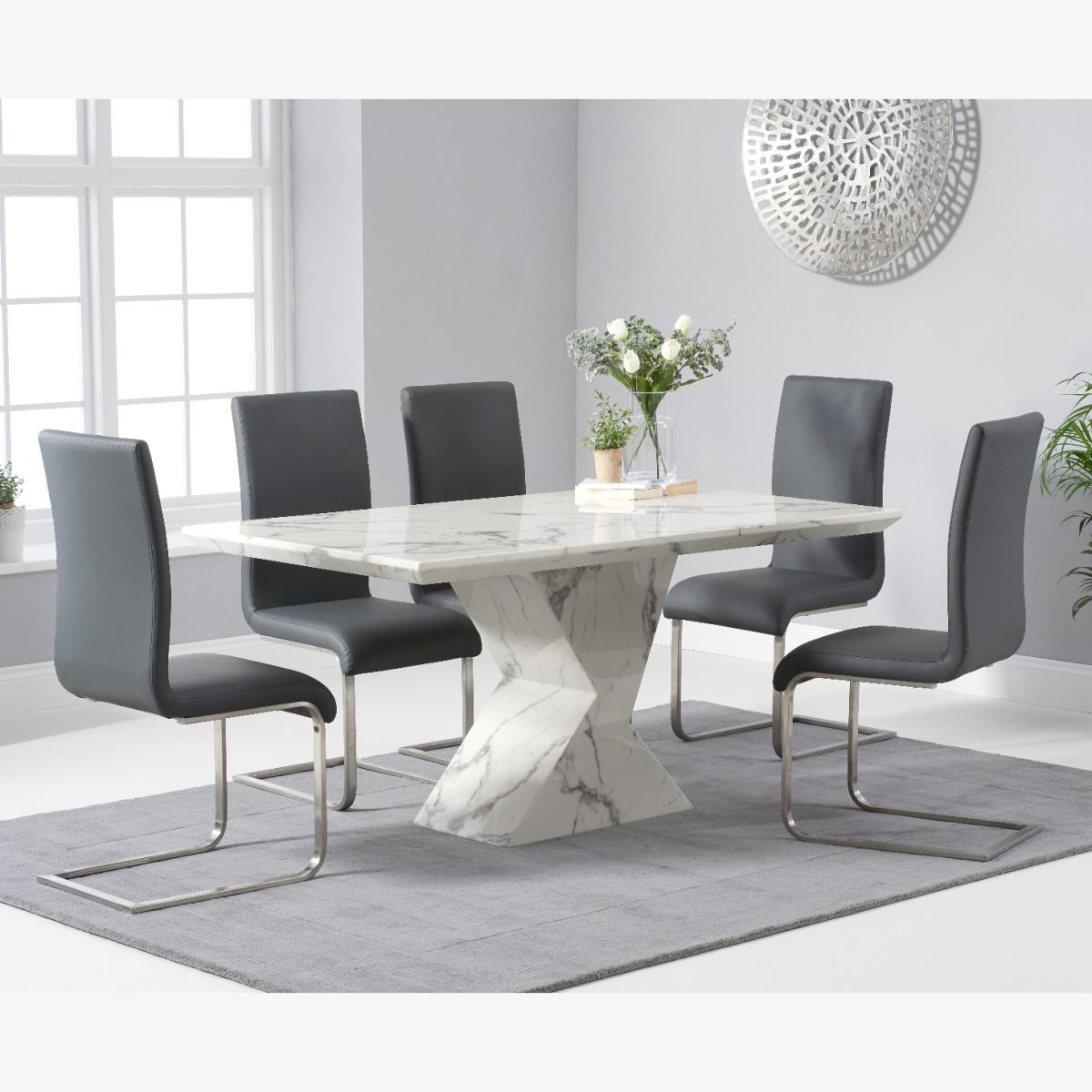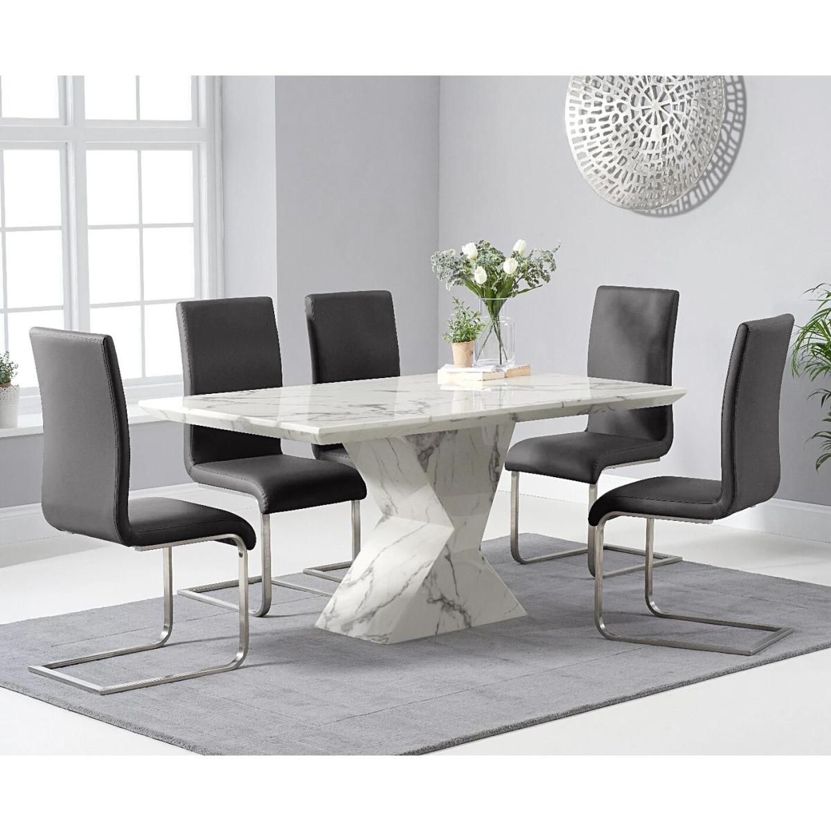 Aaron 160cm Marble White Dining Table with 6 Black Austin Chairs
