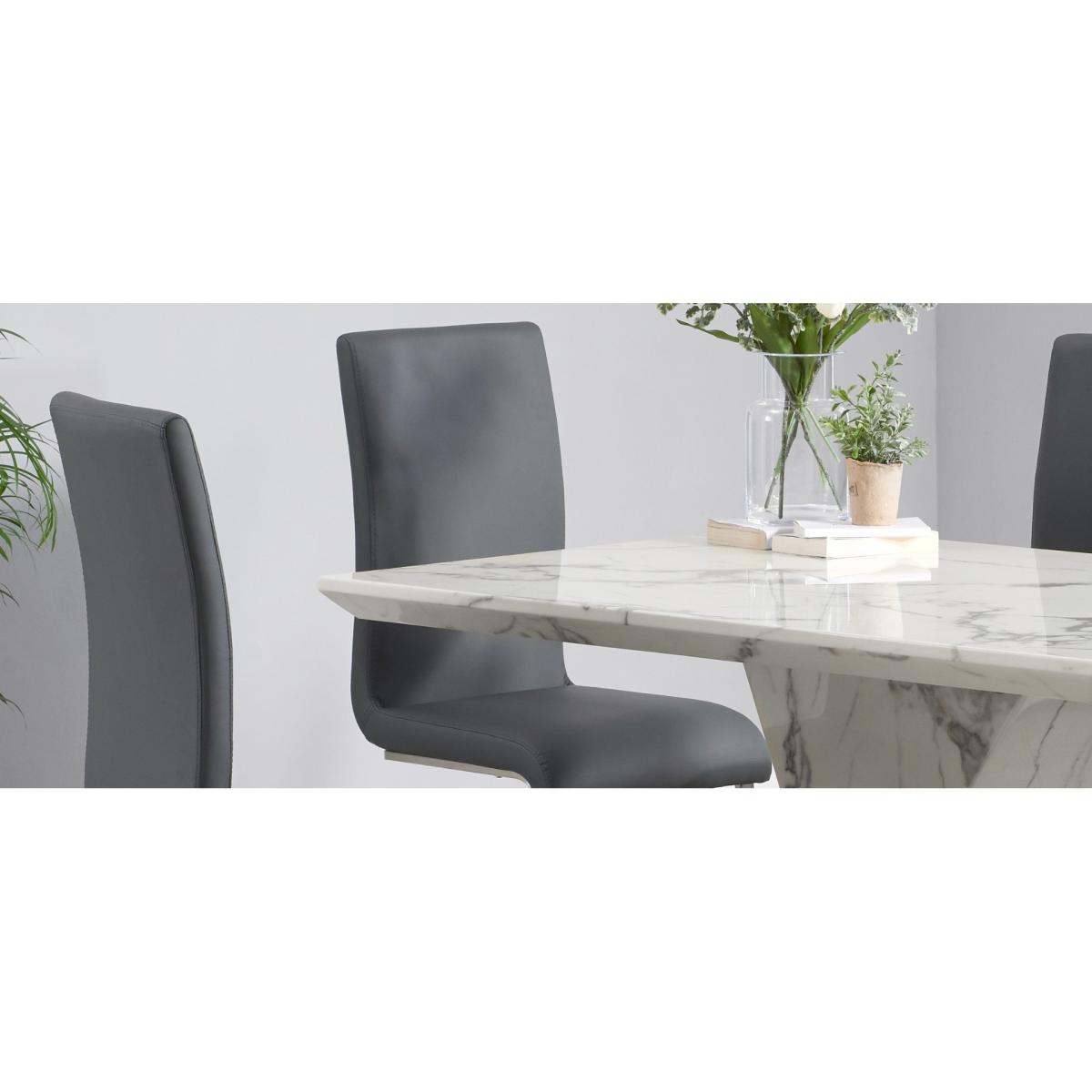 I love this set for its sleek, modern aesthetic and versatile charm. The marble white table offers a clean, sophisticated look that works beautifully in contemporary or minimalist interiors, adding a touch of understated luxury. Paired with black Austin chairs, it creates a striking contrast that anchors the space without feeling overly formal. For styling, consider adding textured placemats or cosy textiles to soften the look, and complement with metallic or glass accessories for a polished finish. It's perfect for both everyday family meals and more stylish entertaining, fitting seamlessly into open-plan kitchens or dining areas with neutral palettes.