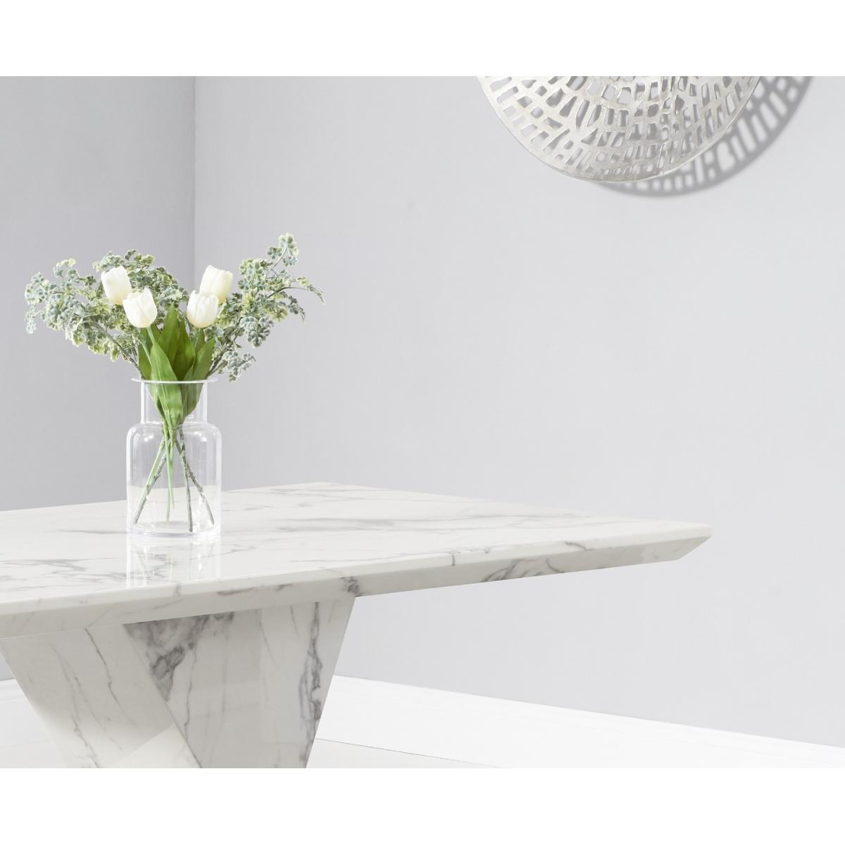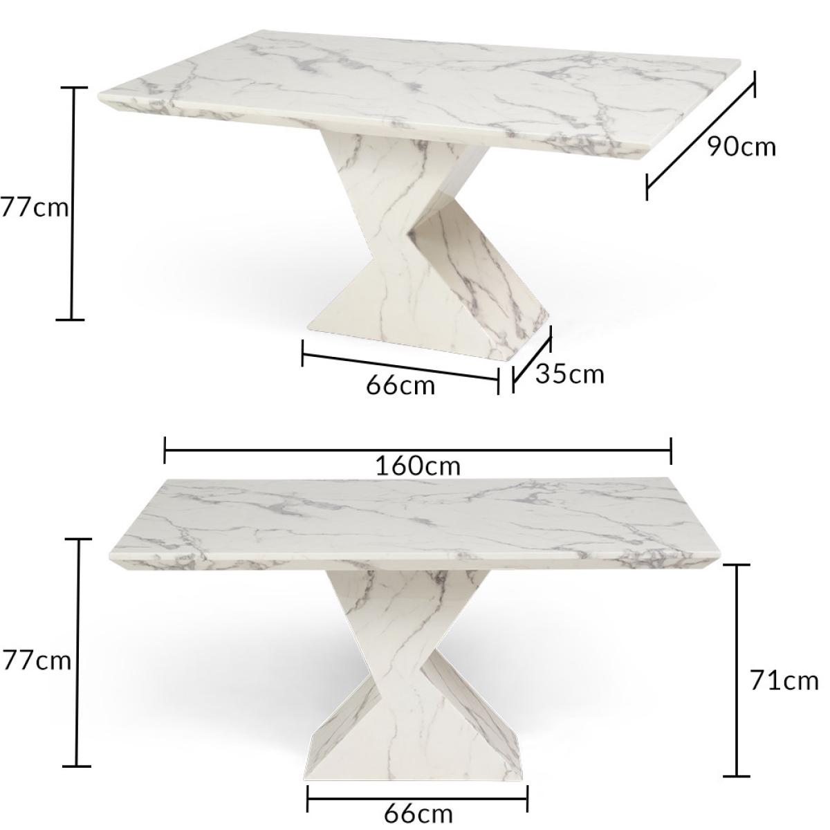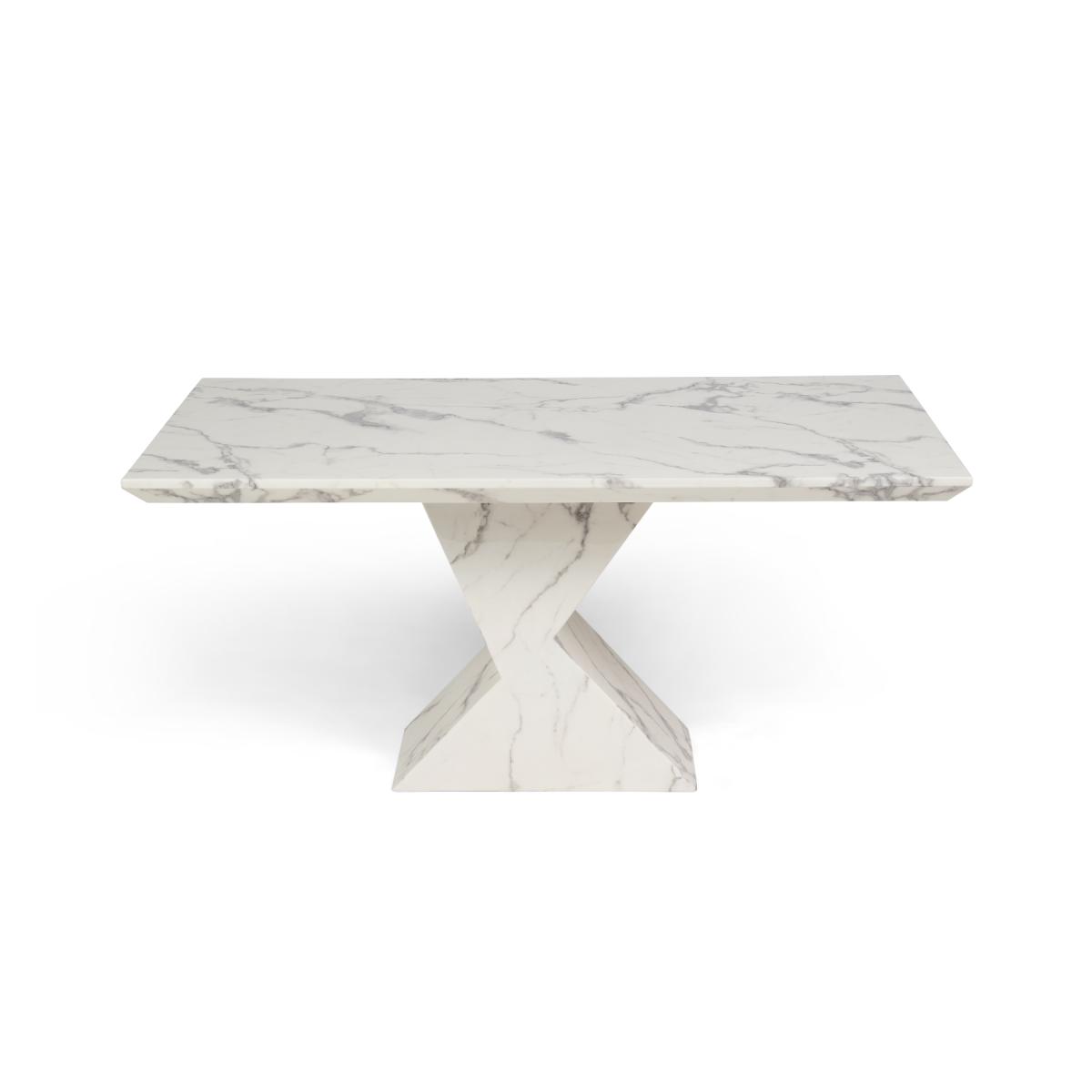 The white marble finish of this stunning Aaron dining table displays unique textures and patterns. Despite its sophisticated finish, it's easy to clean.