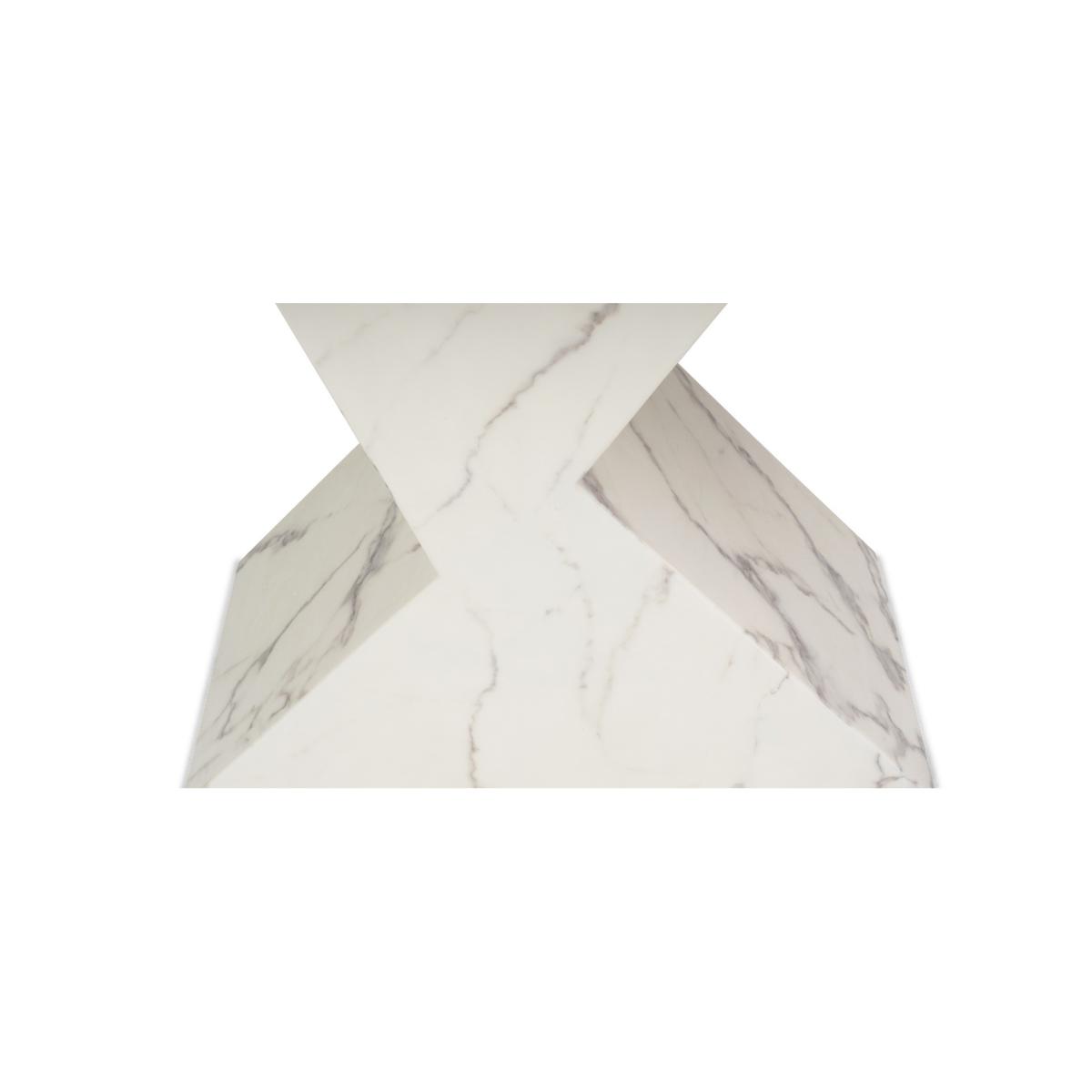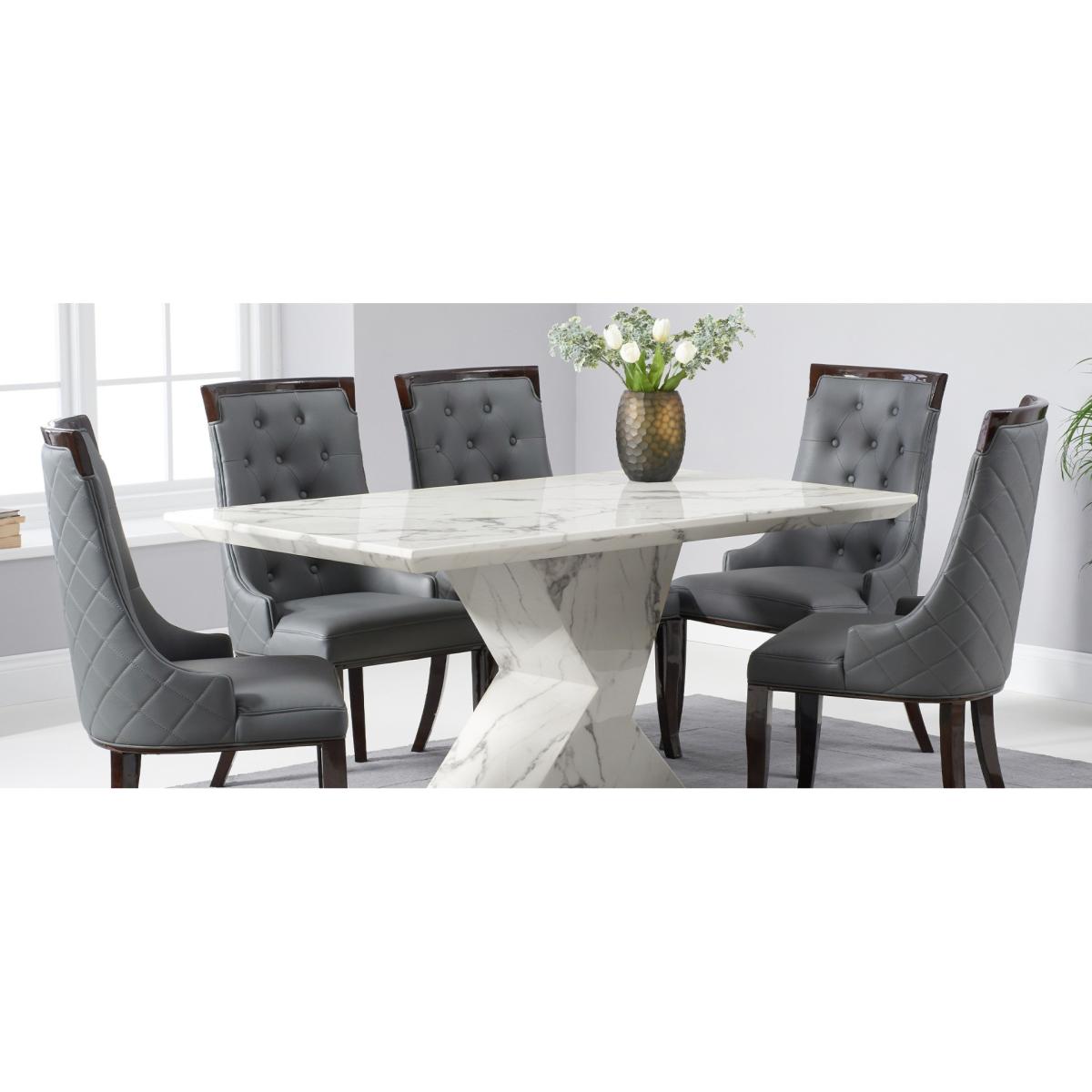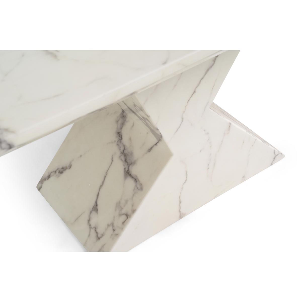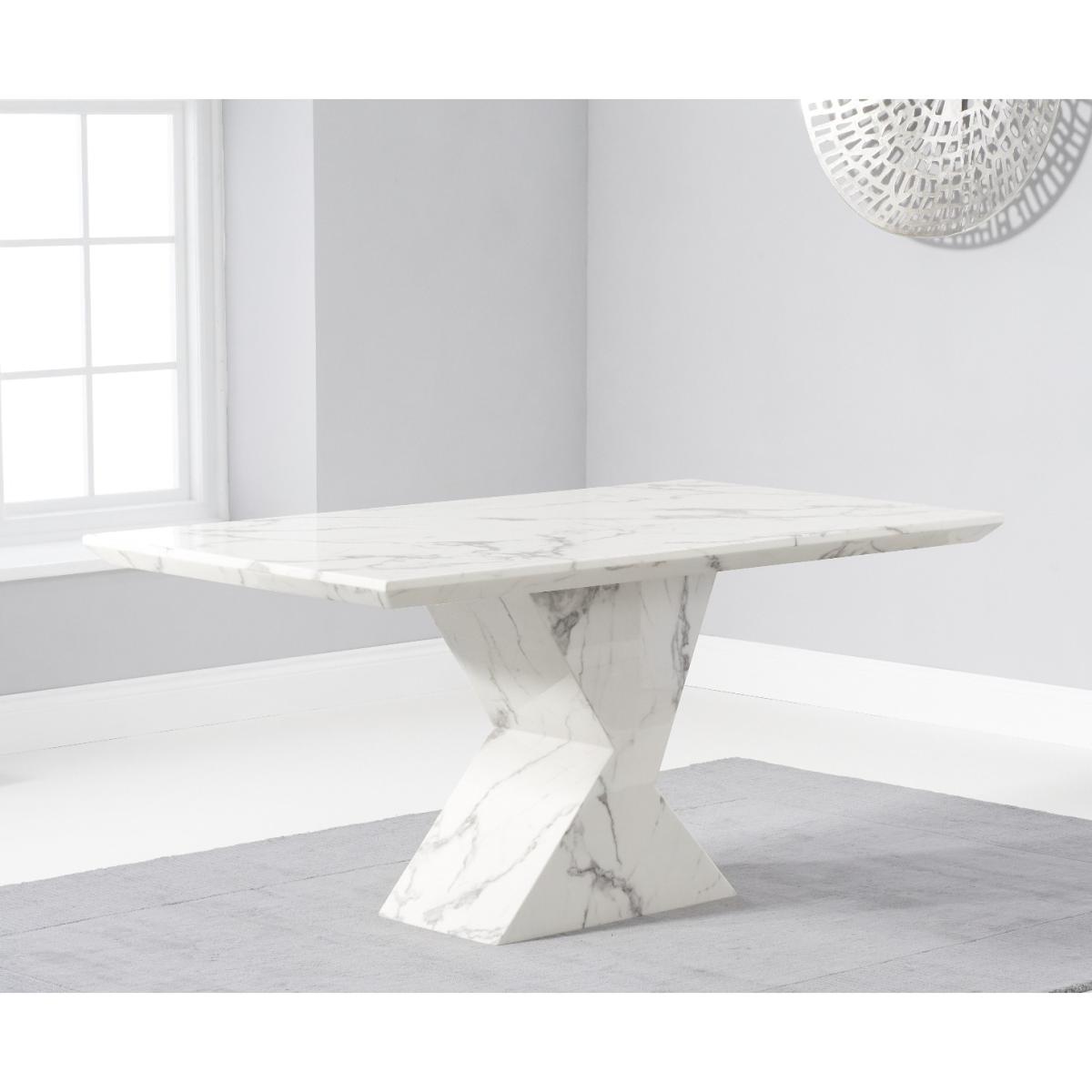 The white marble finish of this stunning Aaron dining table displays unique textures and patterns. Despite its sophisticated finish, it's easy to clean.