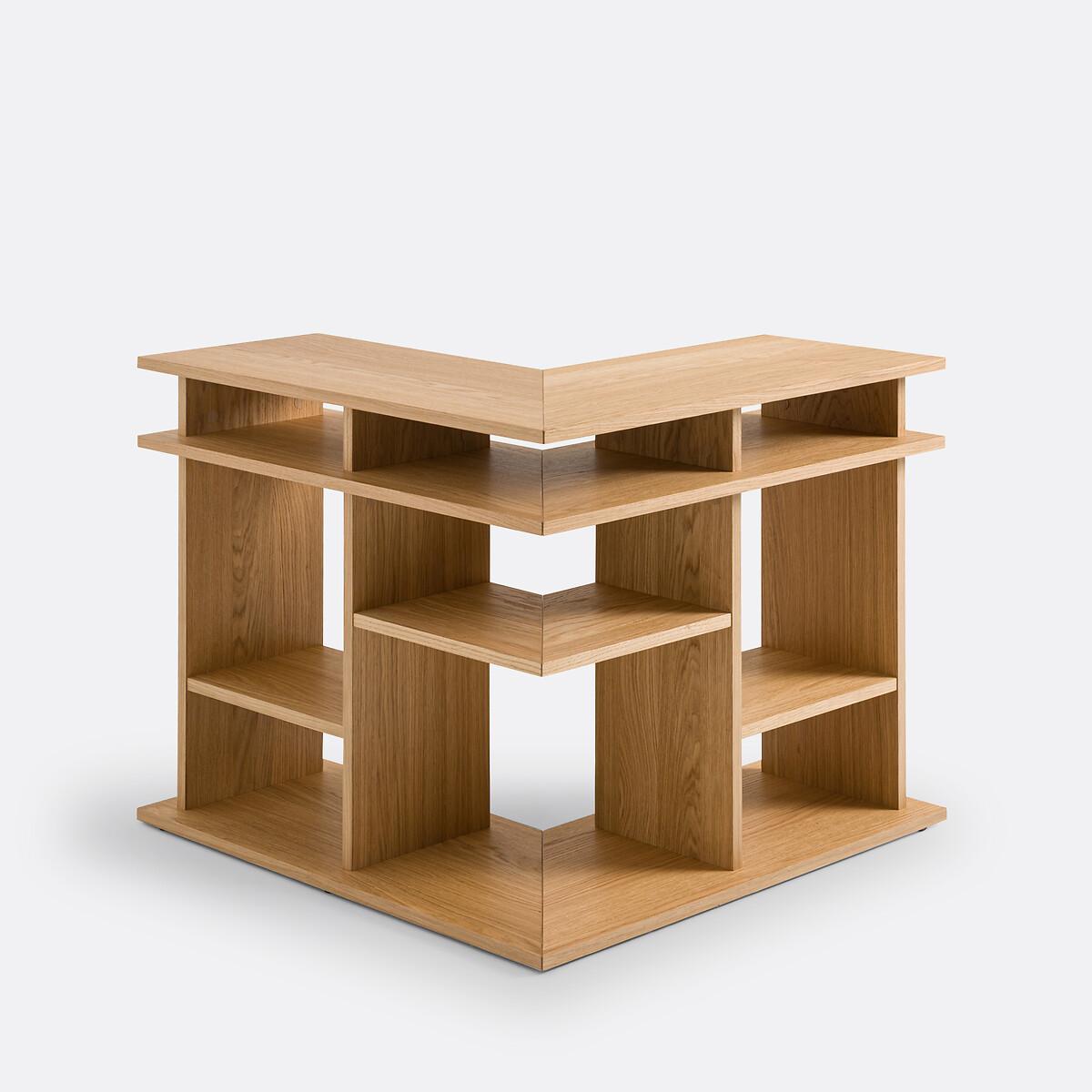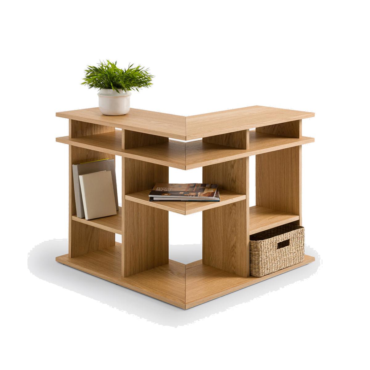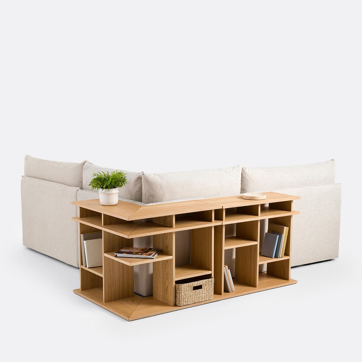 The Abac shelf is part of our Les Ingénieux collection. Creations full of ideas to make life simpler and everyday life more beautiful, imagined by our designers in France.. Abac: a well-placed storage unit ideal for making your sofa space more functional. Why will you love it: • Multiple compartments of different sizes: everything has its place • Its angled shape will fit the back of a sofa or a corner of a wall Product Details • Oak veneered MDF, acrylic varnish finish, natural oak colour • FSC® certified wood • 1 top • 9 compartments • Combine with the Abac straight shelf sold on the site for more storage • Can also be placed in the corner of a room. Dimensions • Width: 80cm • Height: 70cm • Depth: 80cm • Angle : 47cm x 47cm • Weight: 33kg. Dimensions of compartments: Left (top to bottom): • Height: 10cm x Width : 33cm x Depth : 33cm • Height: 34.4cm x Width : 33cm x Depth : 33cm • Height: 18cm x Width : 33cm x Depth : 33cm Angle from top to bottom: • Height: 10cm x left width: 35cm x right width: 35cm x depth : 24.7cm • Height: 18cm x left width: 35cm x right width: 35cm x depth : 24.7cm • Height: 34.4cm x left width: 35cm x right width: 35cm x depth : 24.7cm. Straight, top to bottom: • Height: 10cm x Width : 33cm x Depth : 33cm • Height: 34.4cm x Width : 33cm x Depth : 33cm • Height:18cm x Width : 33cm x Depth : 33cm • This product requires assembly. • Made in Europe. • WOOD FROM SUSTAINABLY MANAGED FORESTS. FSC® certified wood comes from forests that are environmentally, socially and economically well managed. Parcel Dimensions1 parcel • W91 x H22.5 x D42.5cm, 30kg