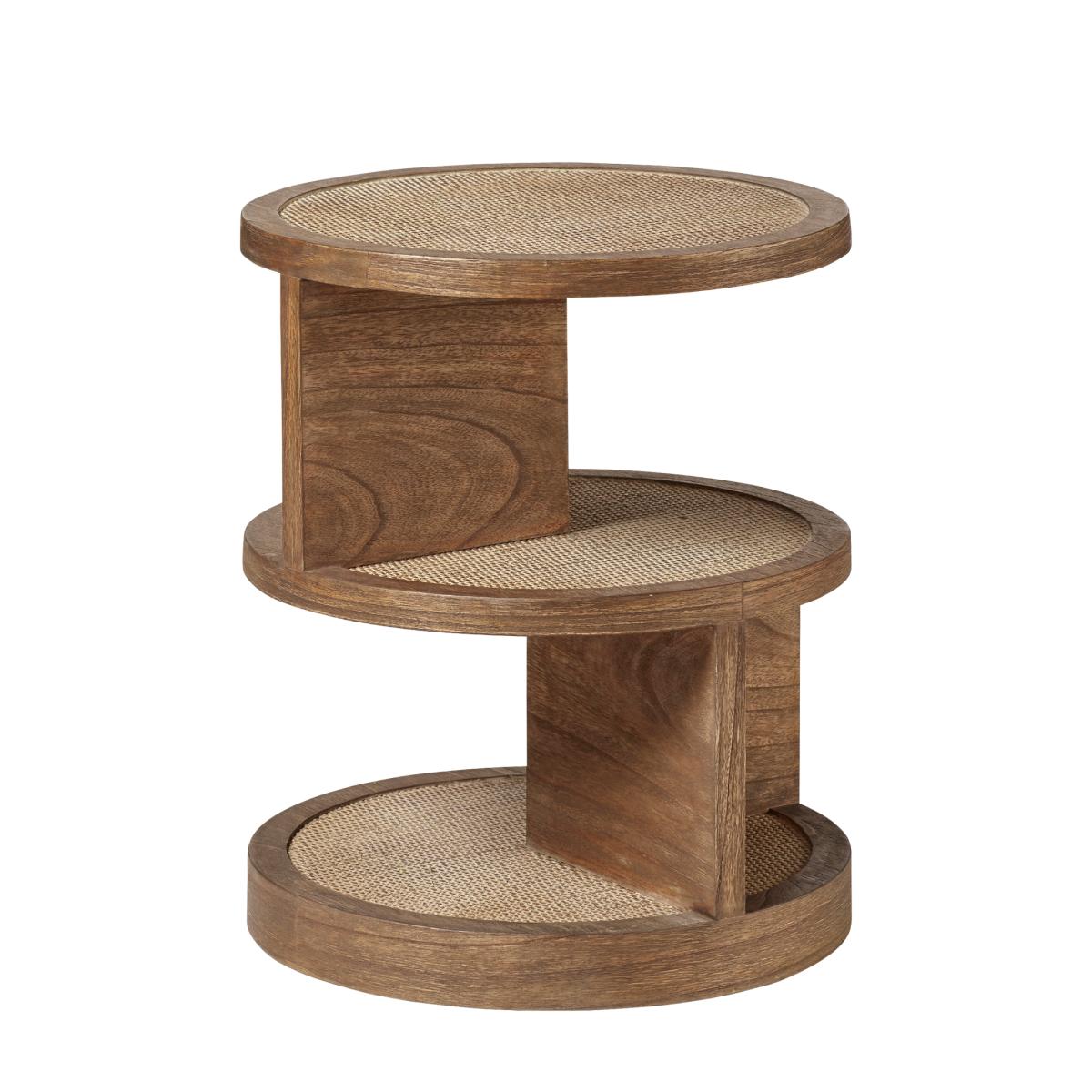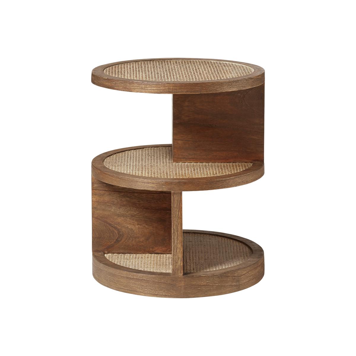 I love this side table for its versatile and natural appeal. Its warm, earthy tones make it a great fit for both contemporary and boho interiors, especially those embracing organic textures and neutral palettes. The layered, semi-circular design adds visual interest without overpowering a space, making it ideal for smaller rooms or as an accent piece beside a sofa or armchair. For styling tips, try pairing it with minimalist table lamps, small ceramic vases, or stacks of books to enhance its natural aesthetic. Its open design also makes it practical for placing essentials within easy reach, while adding a touch of warmth and texture to any living area.