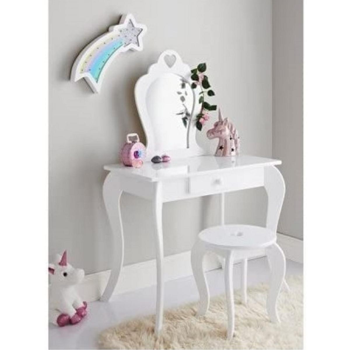 Abaseen Kids dressing table made from high quality thick MDF panel. Dressing table is especially designed for kids, accompanies a stool and mirrors. Perfect size makes this vanity table set becomes the best choice for Kids room. There is 1 built-in drawer and mirror provide plenty of space for makeup, brushes, jewellery and other accessories. This dresser table set is not only to decorate kids room but also practical for daily use.