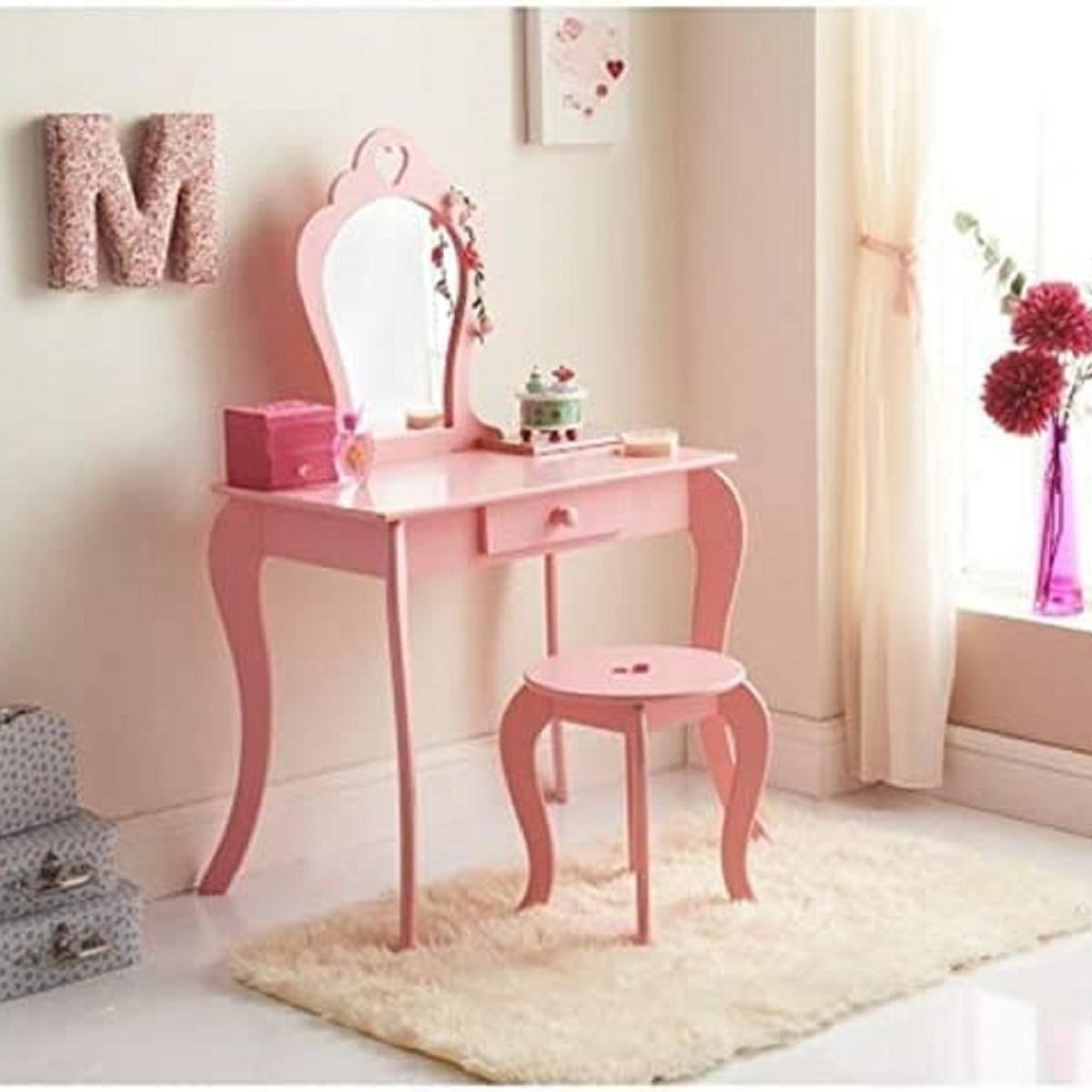 Abaseen Children Amelia Vanity Set Dressing Table with Mirror Stool - Pink