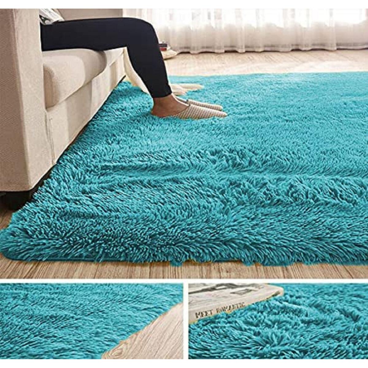 Abaseen Comfort Soft Fluffy Shaggy Rugs, Area Rug For Living Bedroom - Teal / 160cm