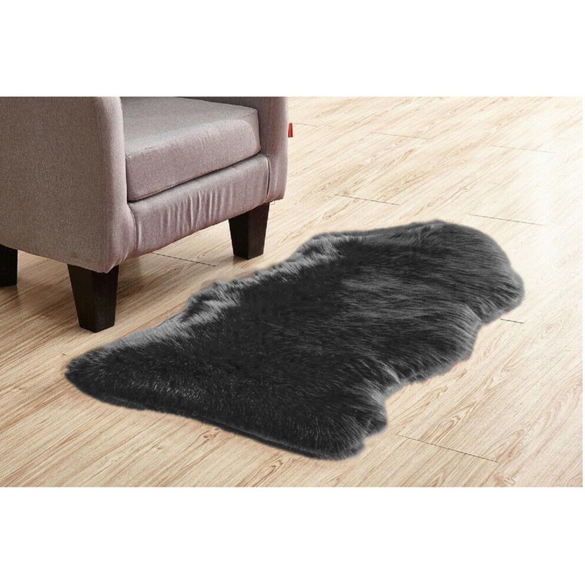 Abaseen Faux Fur Sheepskin Rug, Soft Fluffy Shaggy Sheep Fur Rug Chair and Cover - Anthracite