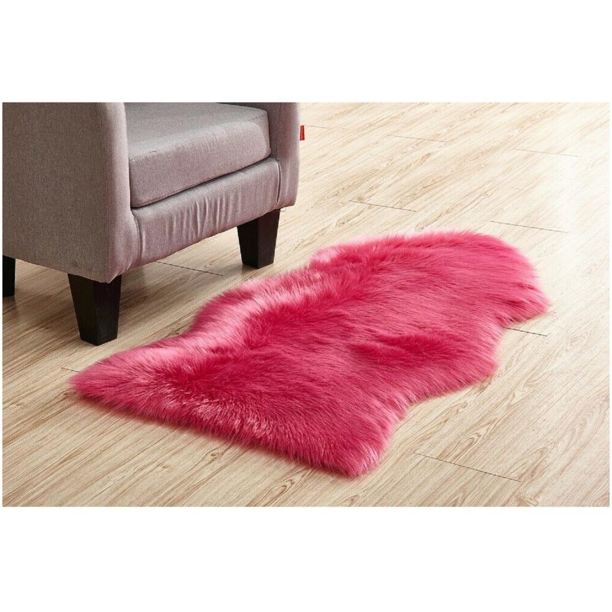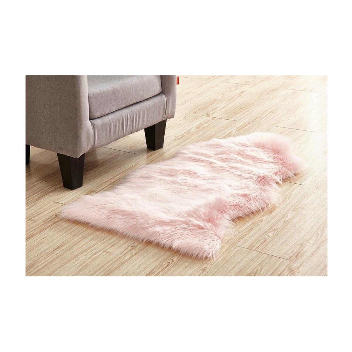 Abaseen Faux Fur Sheepskin Rug, Soft Fluffy Shaggy Sheep Fur Rug Chair and Cover - Baby pink