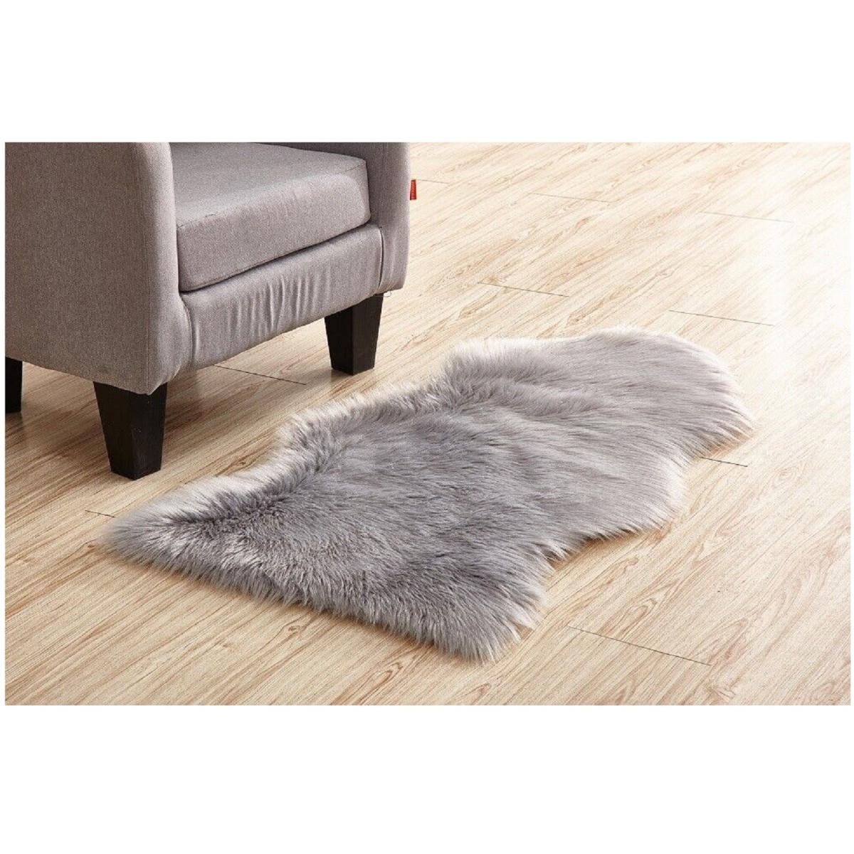 Abaseen 60x90cm Light Grey Faux Fur Sheepskin Rug, Soft Fluffy Rug Chair Cover