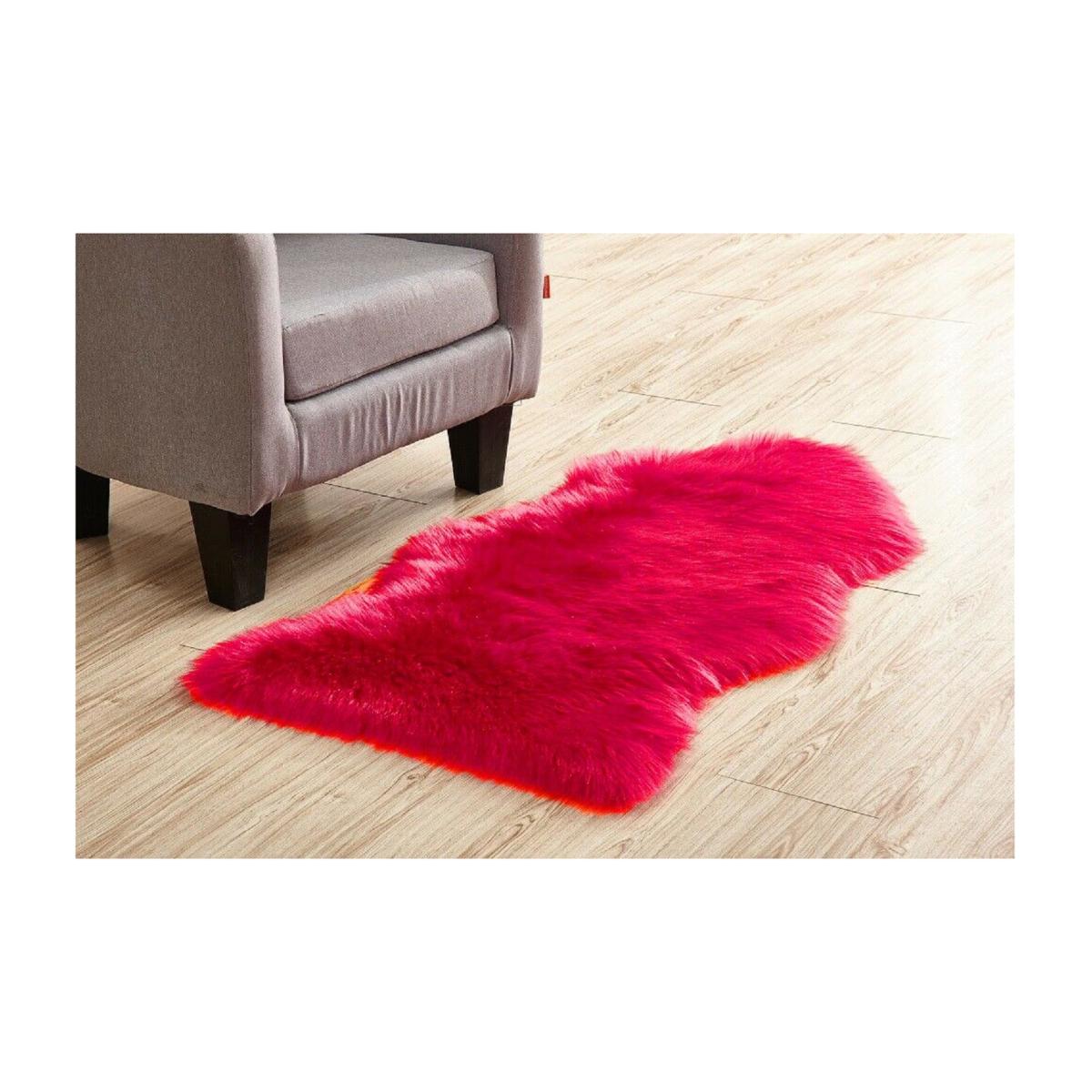 Abaseen Faux Fur Sheepskin Rug, Soft Fluffy Shaggy Sheep Fur Rug Chair and Cover - Red
