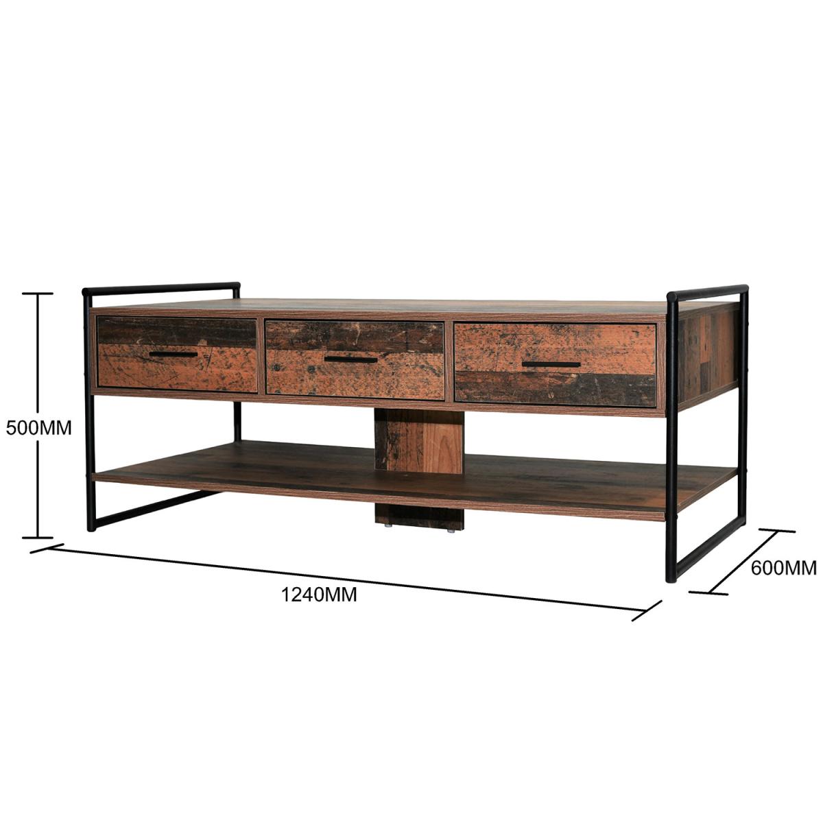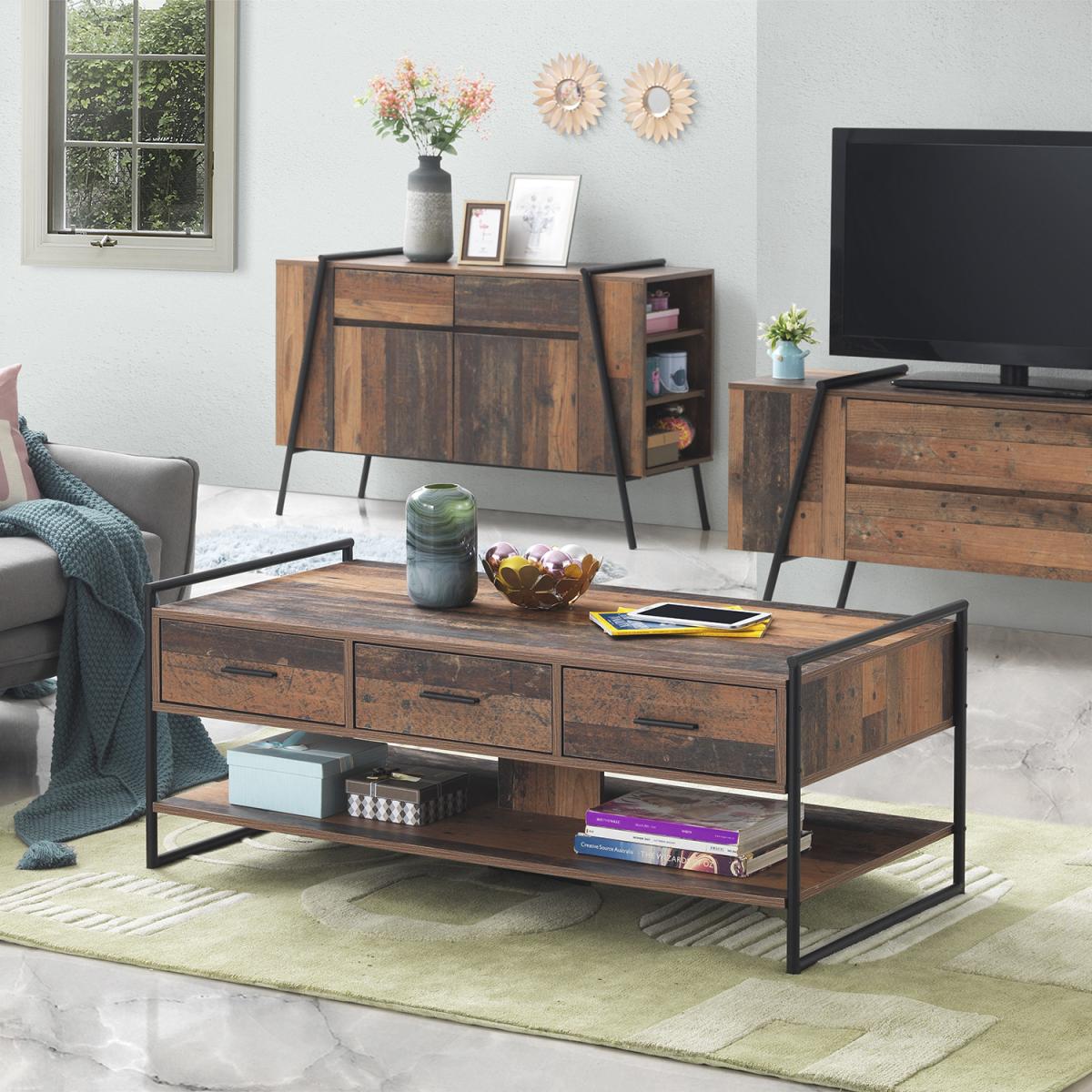 Abbey Coffee Table With Three Drawers - Rustic Oak