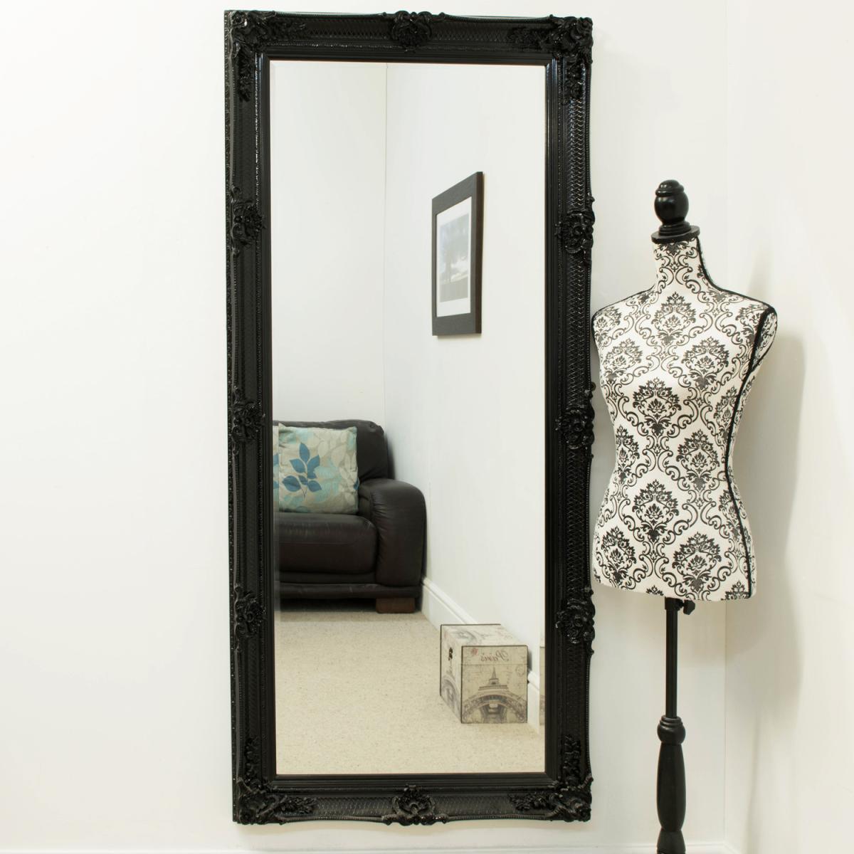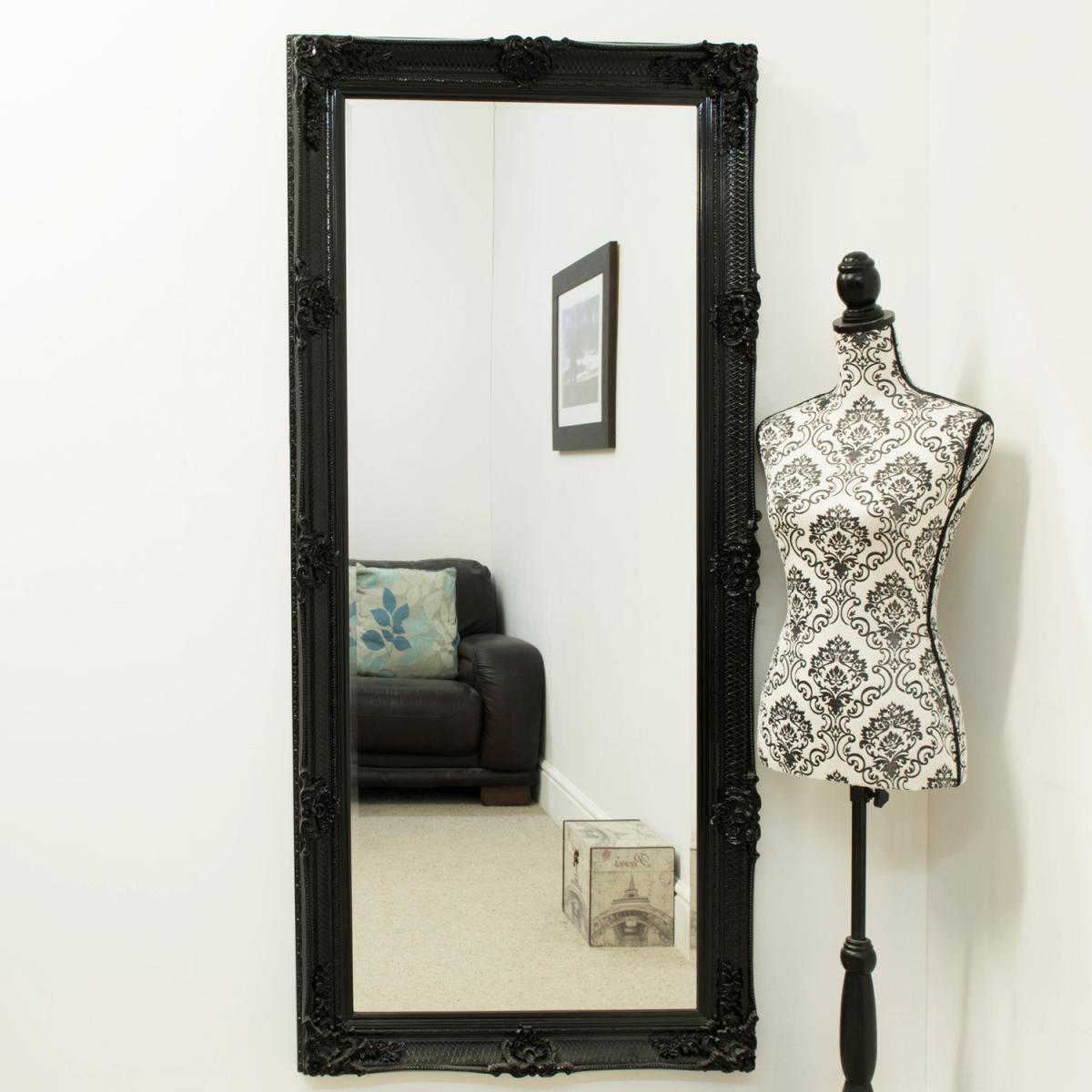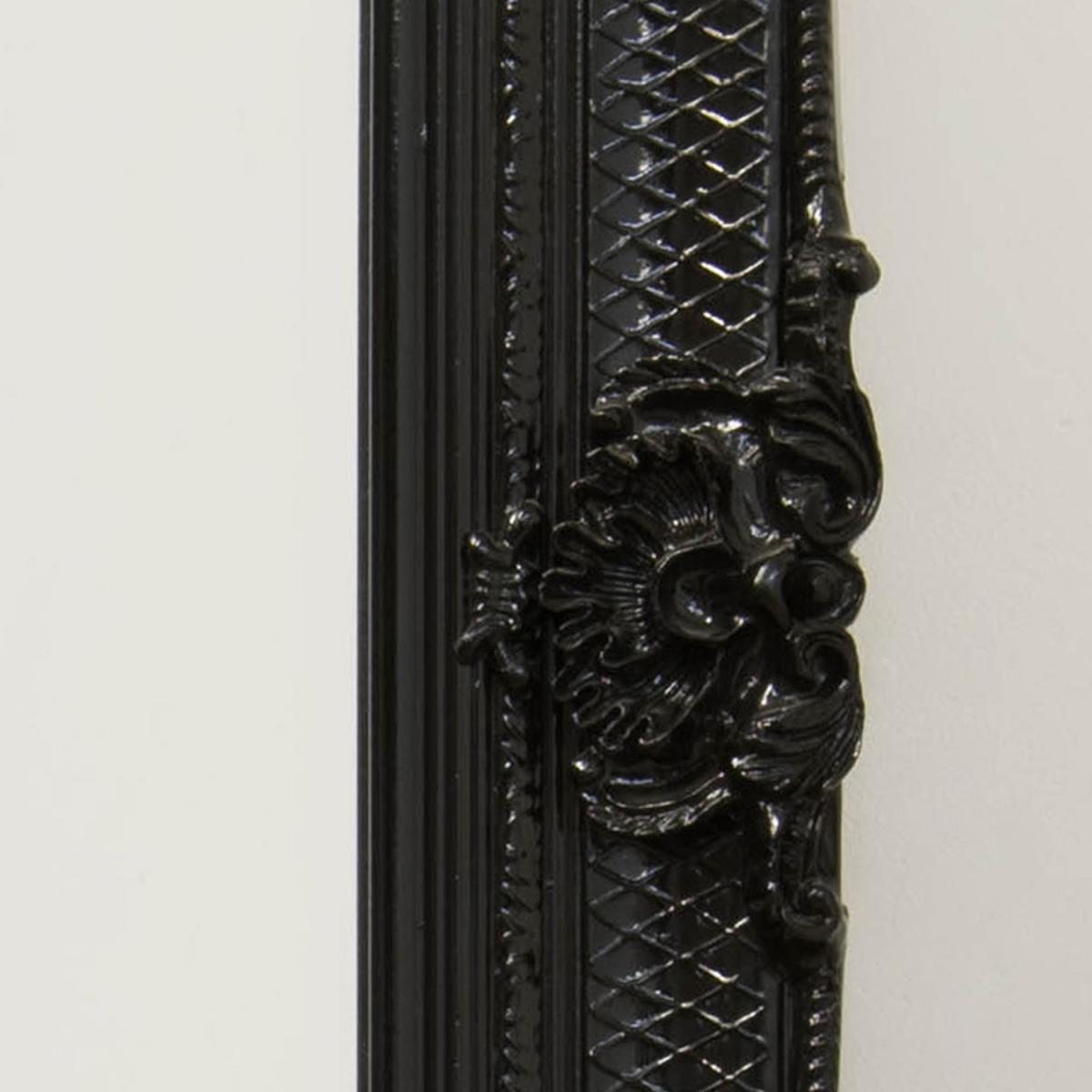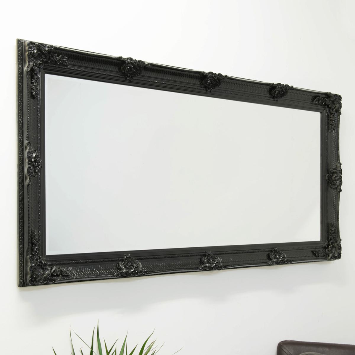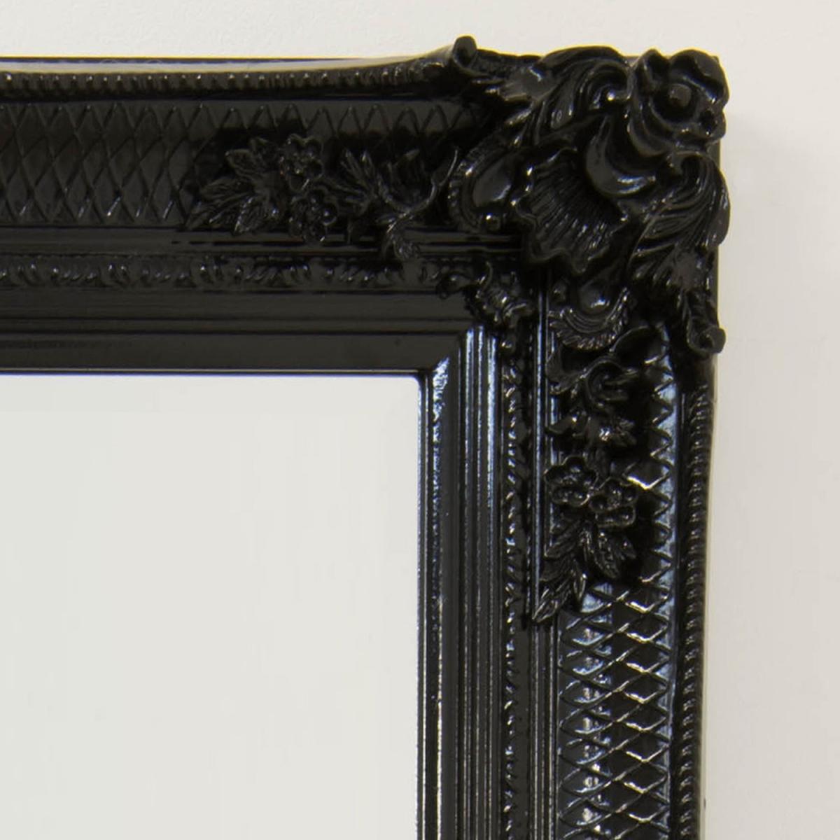 This extravagant 3.5-inch framed black wall mirror adds style to any room from the living room to a hallway. With ornate detailing in all four corners and sides, this is a gorgeous piece ideal for any room from bedroom to lounge. This mirror has a glass size of 4ft 10cm x 2ft 148cm x 61cm.
