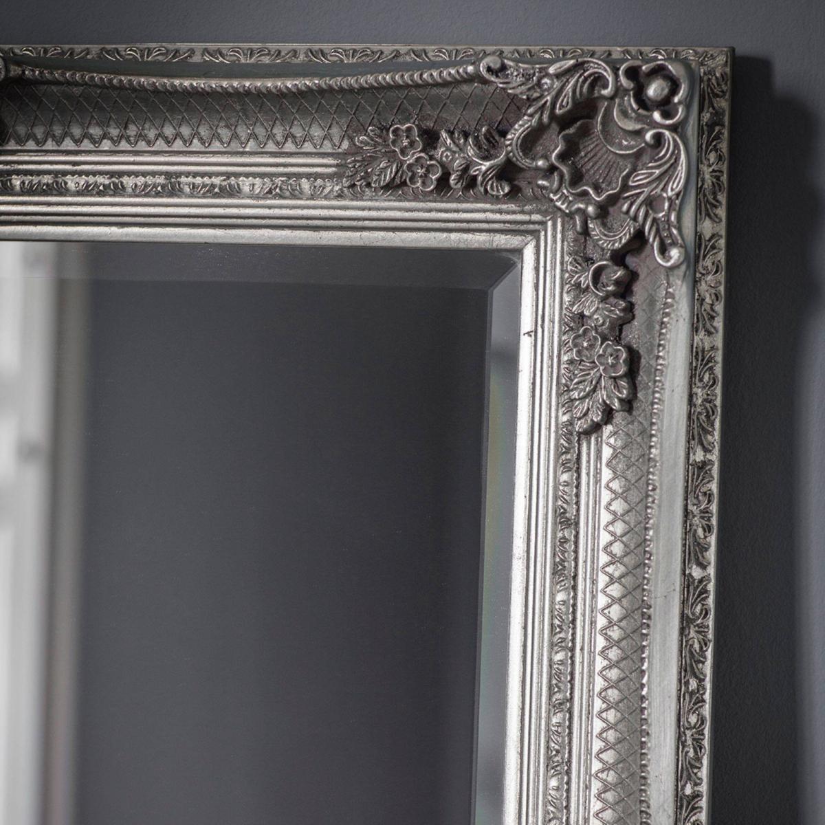 Gorgeously decorative and ornate full length leaner mirror. Create a statement in your home with the stunning Abbey leaner mirror boasting a glamorous silver finish. A beautifully ornate leaner mirror boasting rich corner motives on a solid wooden frame finished in a modern and elegant silver leaf finish. Lean against a wall for a striking statement piece or alternatively hang either horizontally or vertically.