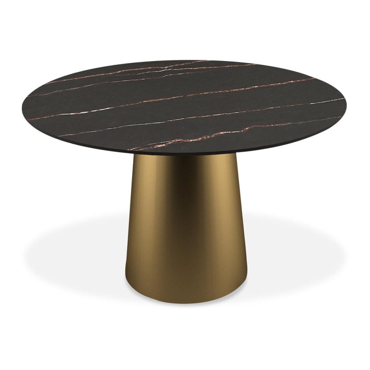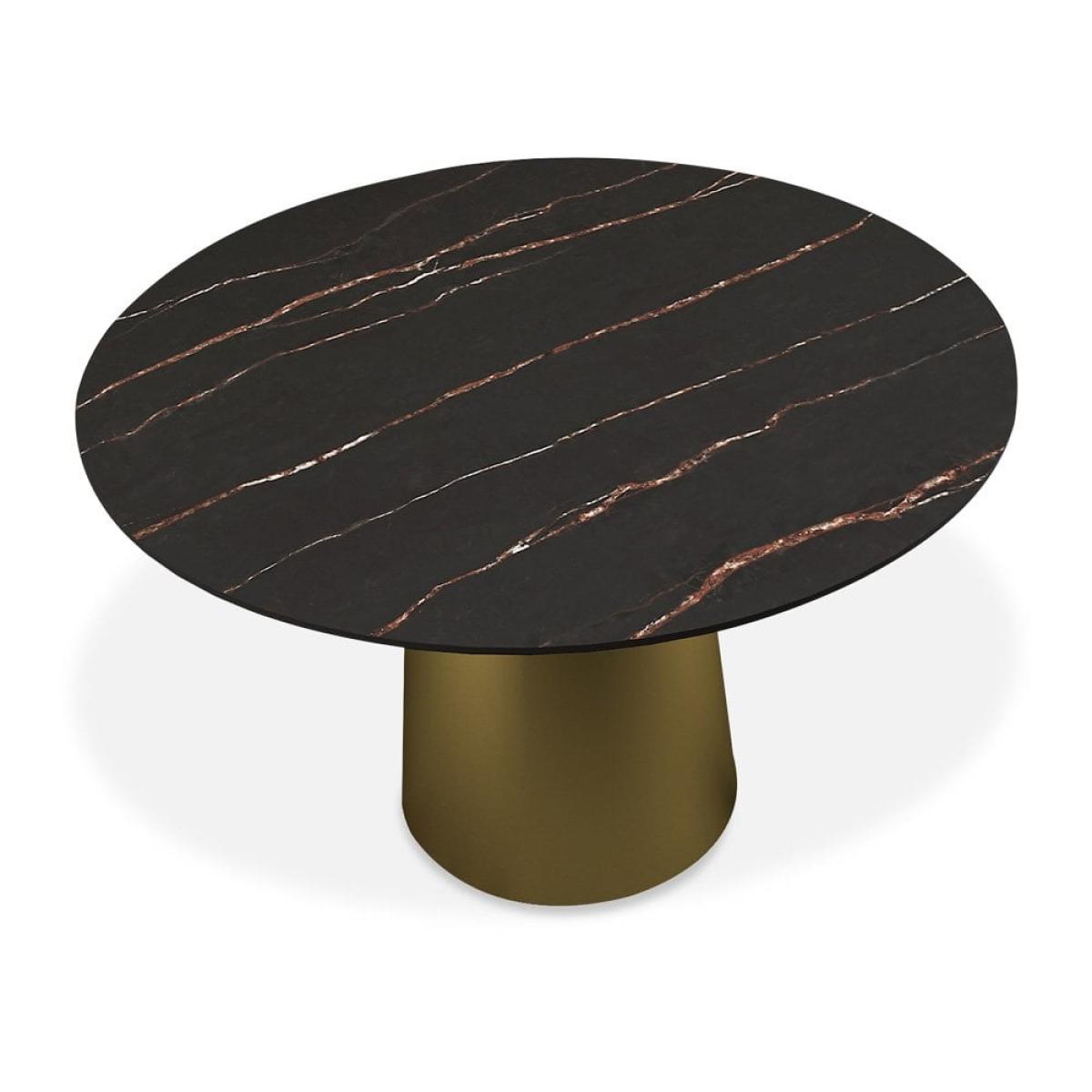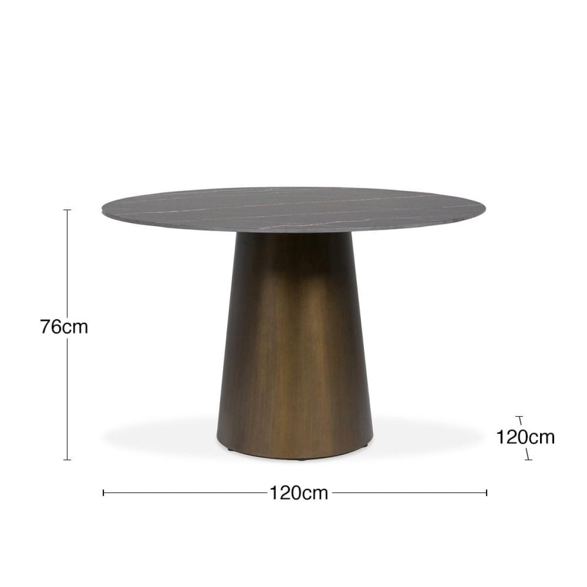 Abeline 4 Seat Round Dining Table, Sintered Stone & Brass