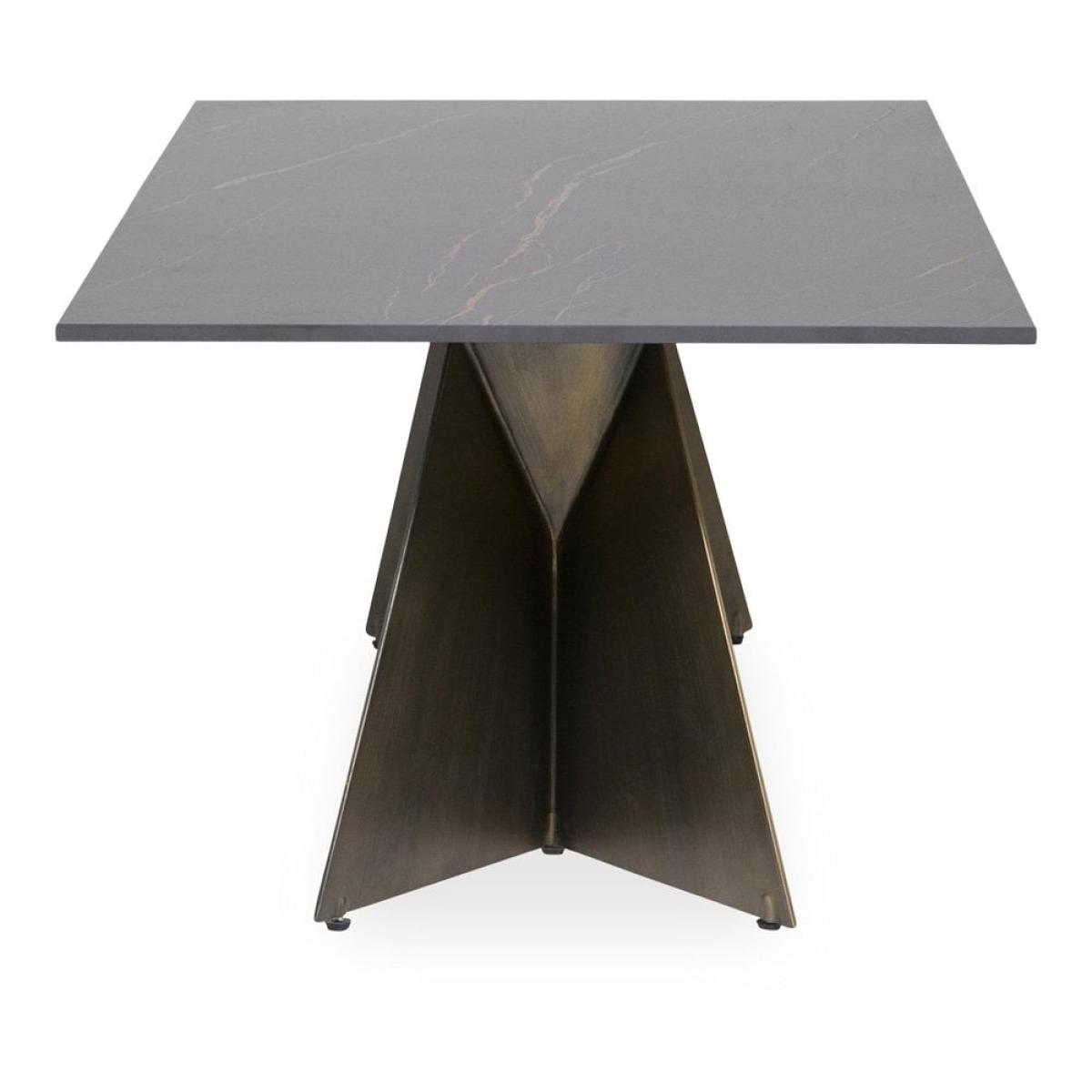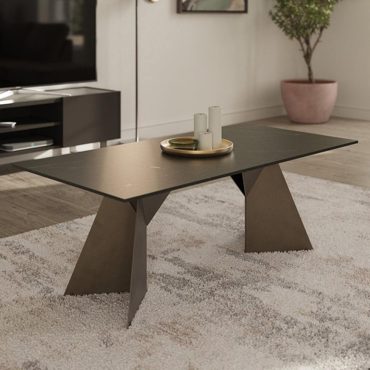 The Abeline Coffee Table uses a combination of sintered stone and metal to give a sleek industrial-inspired vibe to your living room. We love the spacious smooth top and sculptural legs to keep your home looking minimalist and modern. To highlgiht the industrial vibe further, the sculptural legs are in a brushed rustic brass finish.  Sintered Stone is a durable material that is both scratch and heat-resistant. Produced using the same processes that form natural stones without the environmental impact, sintered stone is of the highest quality on par with marble but with the added benefit of being stain resistant. Each piece of sintered stone is unique to you.