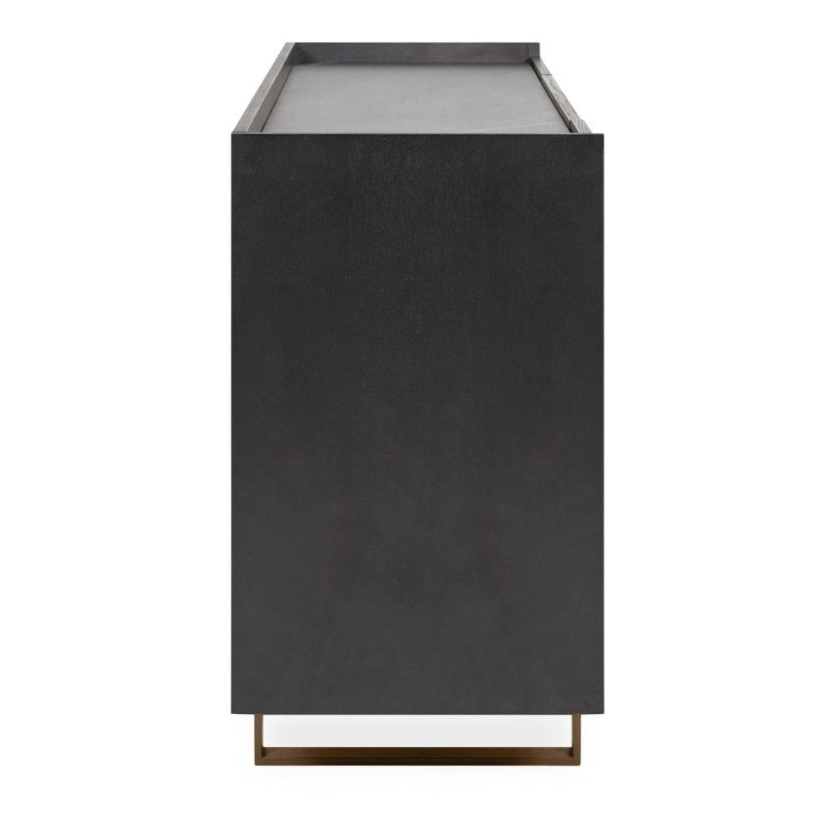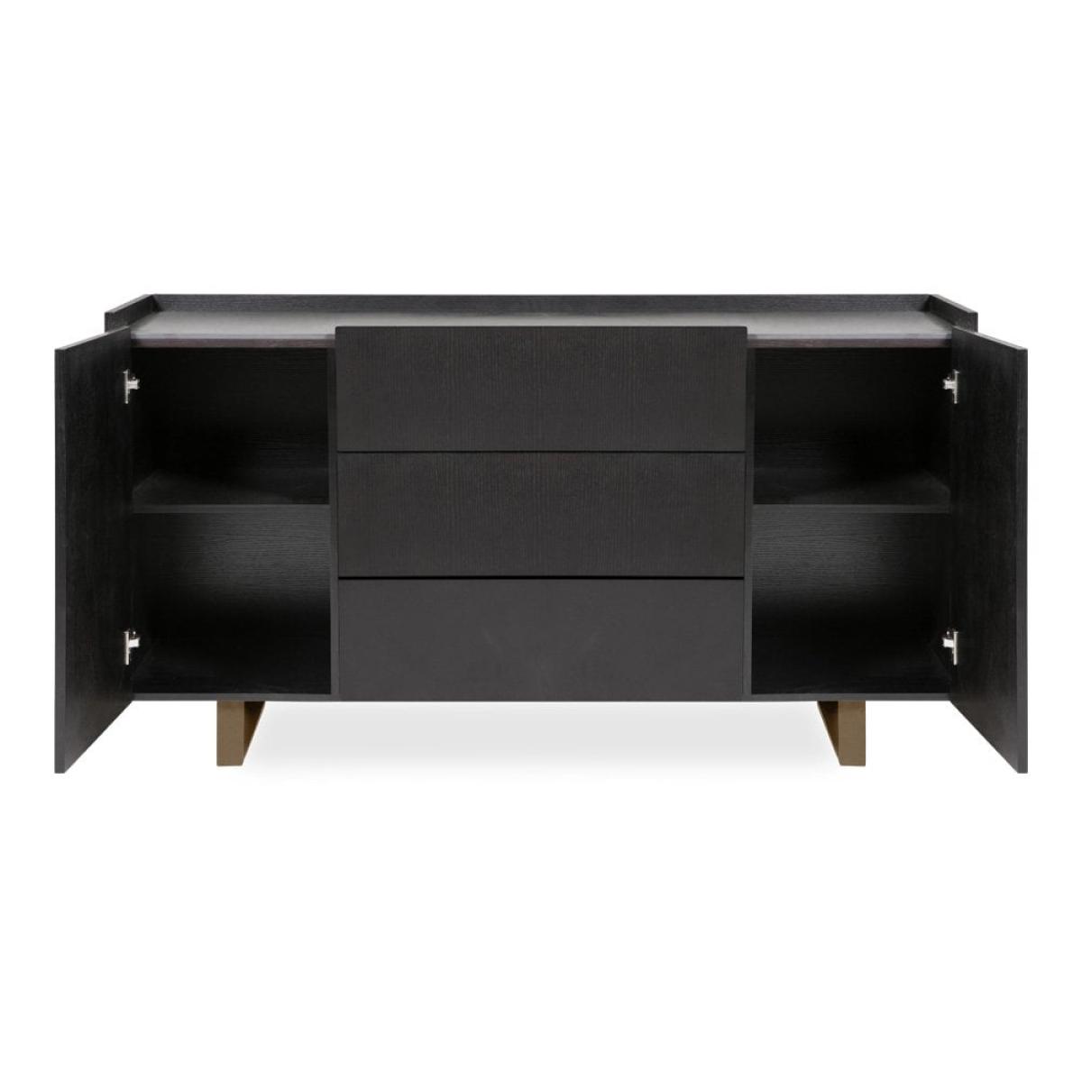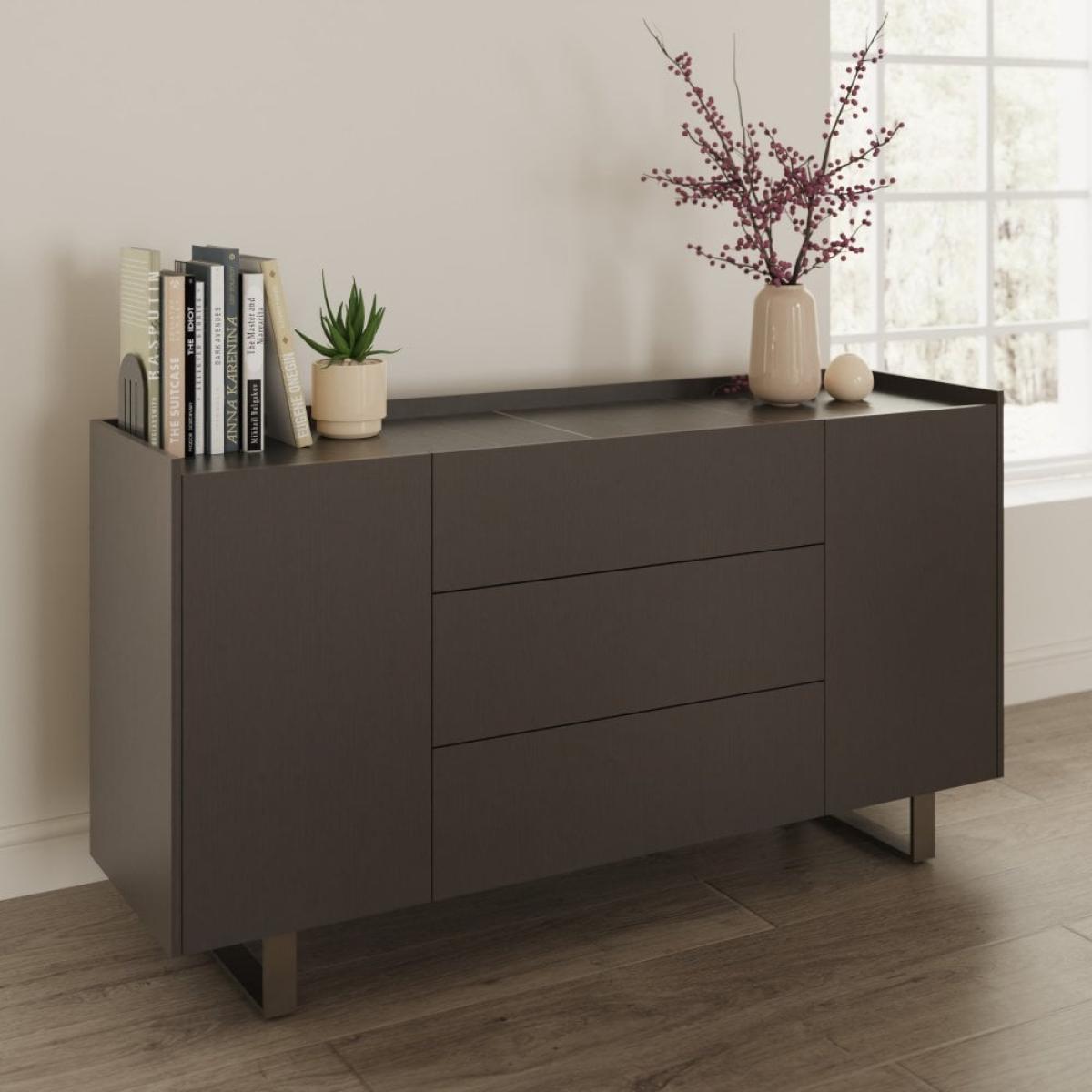 I love this sideboard because of its sleek black sintered stone top and minimalist design, which makes it highly versatile. It works particularly well in modern, contemporary or industrial interiors, where its dark finish adds depth and sophistication. Practical styling tips include layering it with decorative objects like vases or sculptural pieces for visual interest, while keeping the surface uncluttered for a clean look. Inside, it offers ample storage, perfect for decluttering living spaces or dining rooms. For a balanced aesthetic, consider pairing it with textured materials like warm woods or soft textiles to soften the starkness of the black finish.