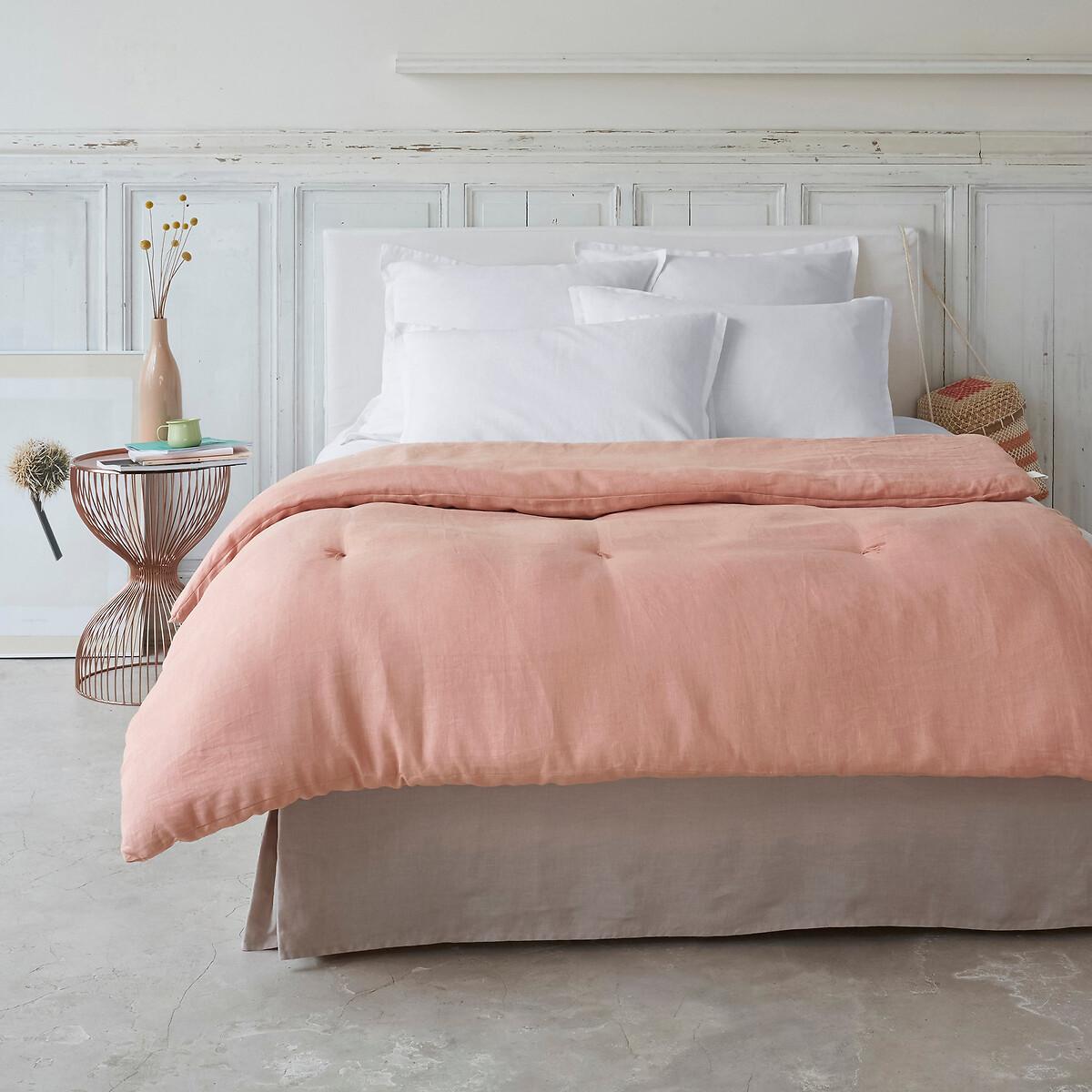 Abella washed linen bedspread. A refined bed down to its details. A fresh material in summer and comfortable in winter, washed linen becomes softer and more beautiful with every wash.. Slightly wrinkled, ironing is unnecessary. Product Details • 100% pre-washed linen • Plain white top in 100% cotton • 30cm skirt • The ruffle is sewn on three sides of the fabric and is therefore suitable for beds with a headboard. Sizes • 90 x 190cm: Single • 140 x 190cm: Double • 160 x 200cm: King • OEKO-TEX® Standard 100. Standard 100 certification by OEKO-TEX® tests textile products for harmful substances via an independent, international label.