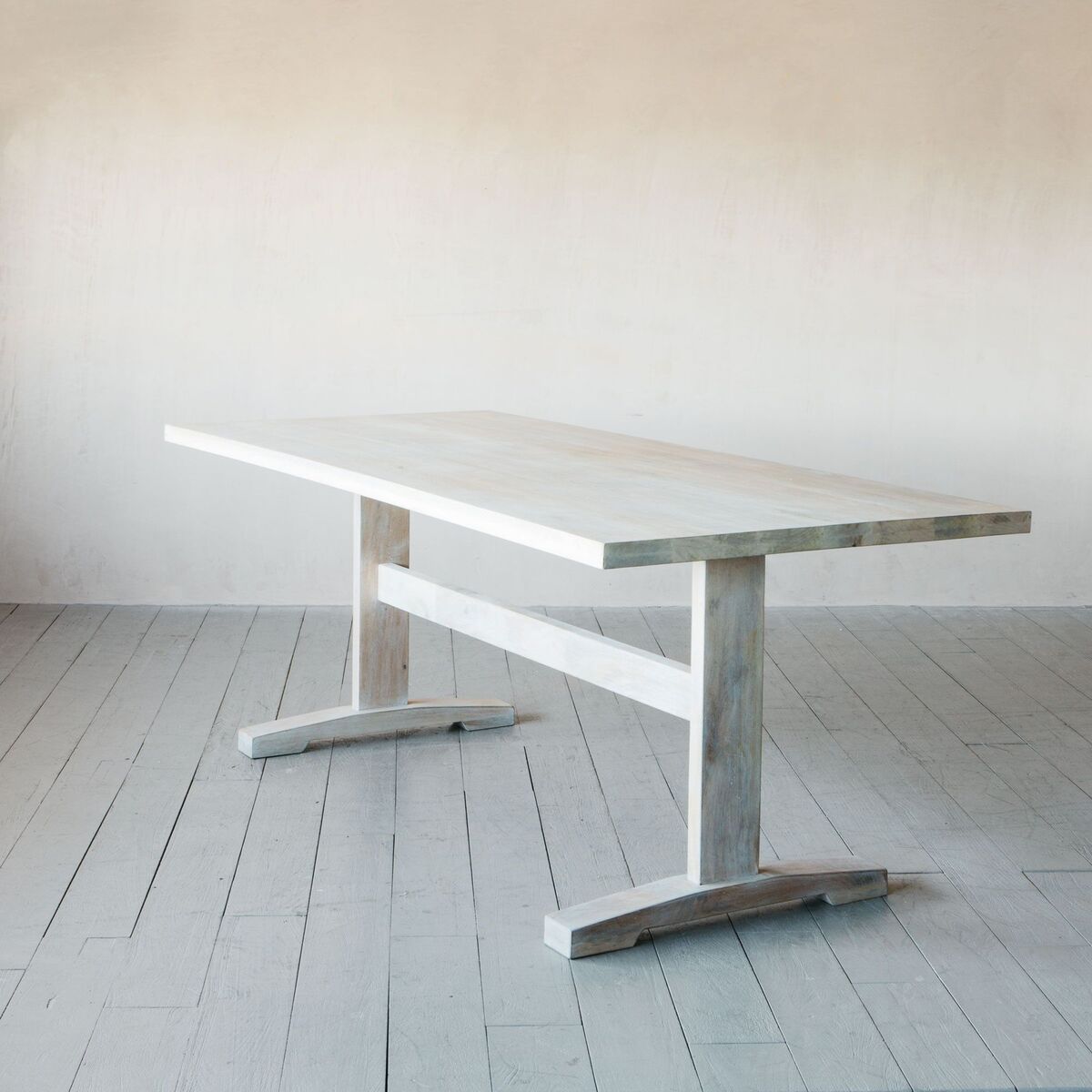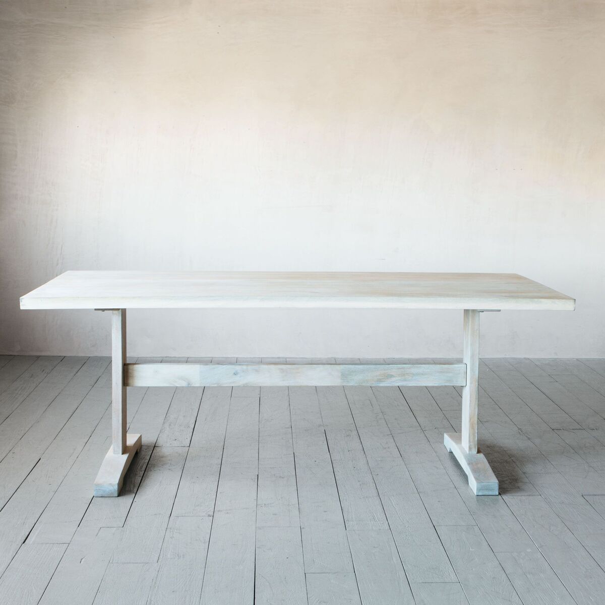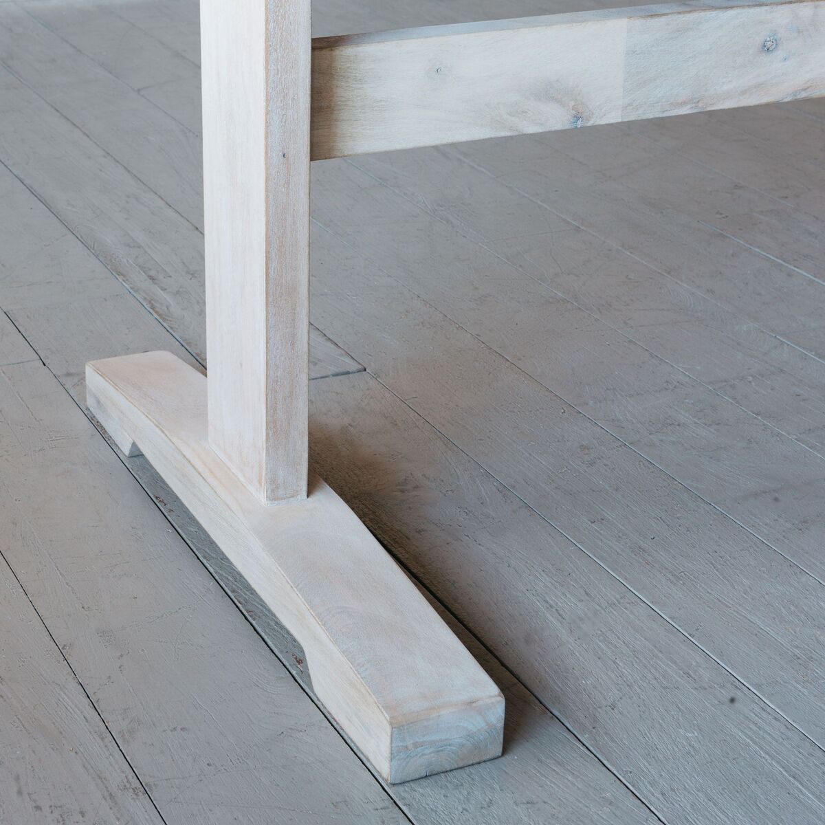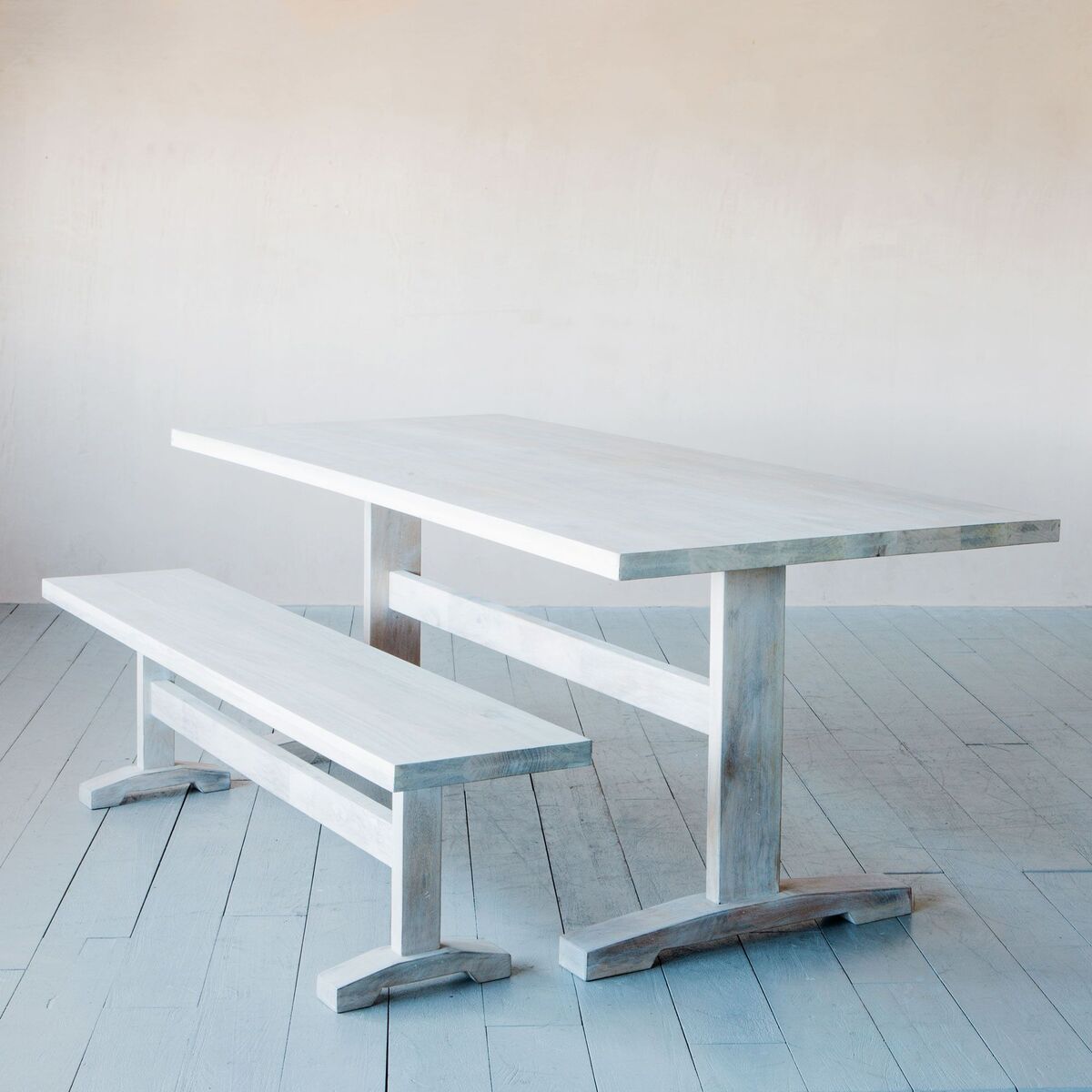 This structural dining table features white washed wood for a refined addition to any interior style, pair with the matching Abelline Dining Bench and cork placemats for a fresh coastal look. H77 x W200 x D90cm. Made of iron and mango wood in a white-wash finish. Weight: 46. 5kg. Some self assembly required. Clean with a soft dry cloth. To prevent watermarks and heat damage, never place items such as ceramics, tableware or glassware directly onto the surface of any of our wooden furniture without the protection of a heat resistant mat, coaster or trivet. Clean up any spillages immediately to avoid staining.