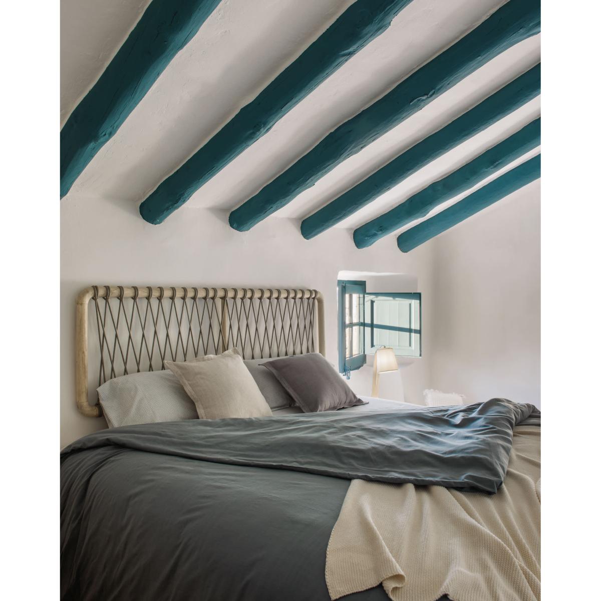 I’m a fan of the Aberash headboard for its clean lines and the contrast between the pale cedarwood frame and grey cord weaving, which keeps a bedroom feeling light and airy. It works particularly well in Scandi-inspired, coastal or modern-rustic schemes where you want a touch of texture without overwhelming the space. For styling, pair it with crisp white or soft-grey linens and throw in a couple of muted-tone cushions to echo the cord detail. A simple floating shelf or slim wall-mounted reading light above will balance the openness, and a potted plant on a nearby bedside table will introduce a splash of greenery that complements the natural wood.