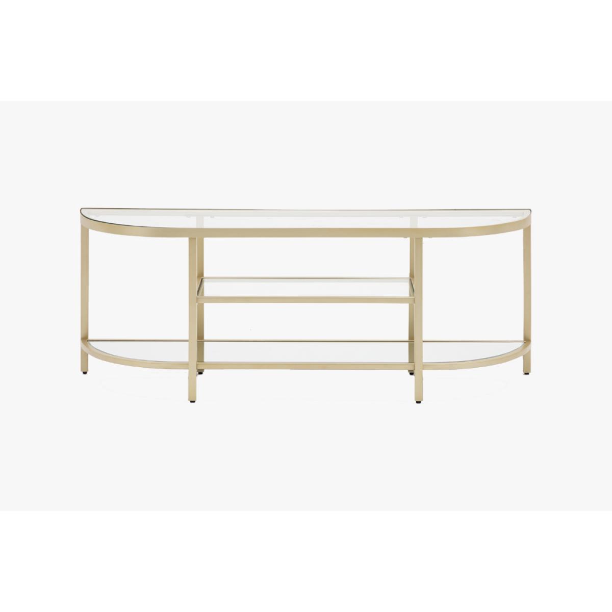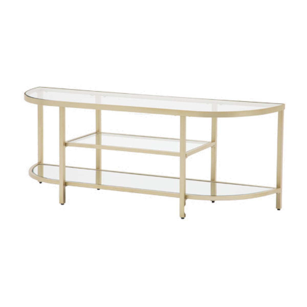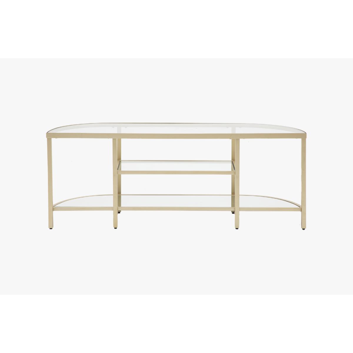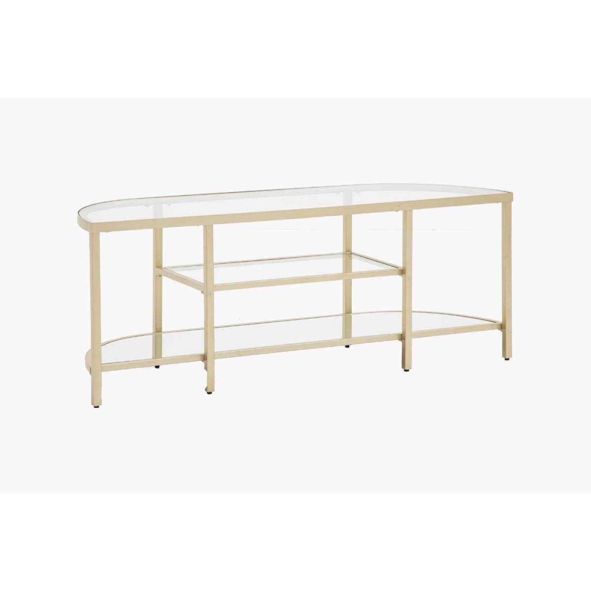 Designed to impress the Aberdeen Media unit cannot go unnoticed. This luxuriously designed media unit is perfect for adding a bit of glamour to your media set up. With plenty of shelves for all your entertainment devices, the tempered glass shelves and mirrored low self in a sleek champagne toned metal frame simply exude style.