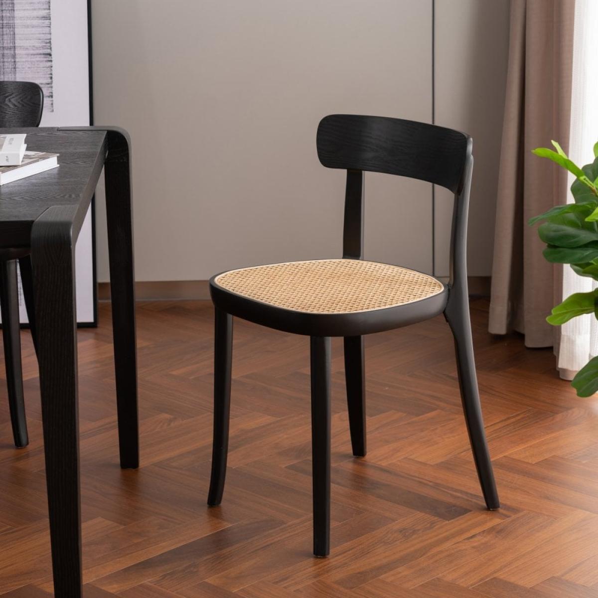 I love this dining chair for its stylish yet functional design. The combination of natural weave and black accents creates a versatile looks that can suit both modern and rustic interiors. It works particularly well in dining rooms that have a neutral palette or a Scandinavian-inspired aesthetic, adding texture and warmth without overpowering the space. When styling, consider pairing it with a simple, streamlined table and minimalist accessories to let the chair stand out. For added comfort, a subtle cushion in a neutral or soft hue can make it more inviting for longer seating. This piece is a practical choice that blends craftsmanship with contemporary appeal, making it a great investment for a timeless, sophisticated dining area.