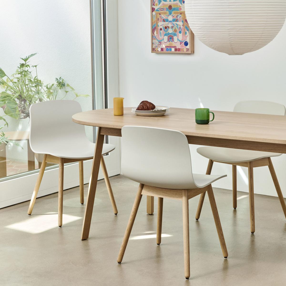 Universal, timeless and comfortable, the famous About a Chair seating collection was created by designer Hee Welling. About a chair AAC12 is versatile and fits perfectly into all spaces: house, office, business use... Resolutely focused on the future of furniture, the famous ''About a Chair'' collection is centred on the use of environmentally friendly materials. The shells are made from 100% recycled polypropylene, sourced from post-consumer waste. The oak used for the legs is FSC-certified (from sustainably managed forests) and covered with an ecological water-based varnish.