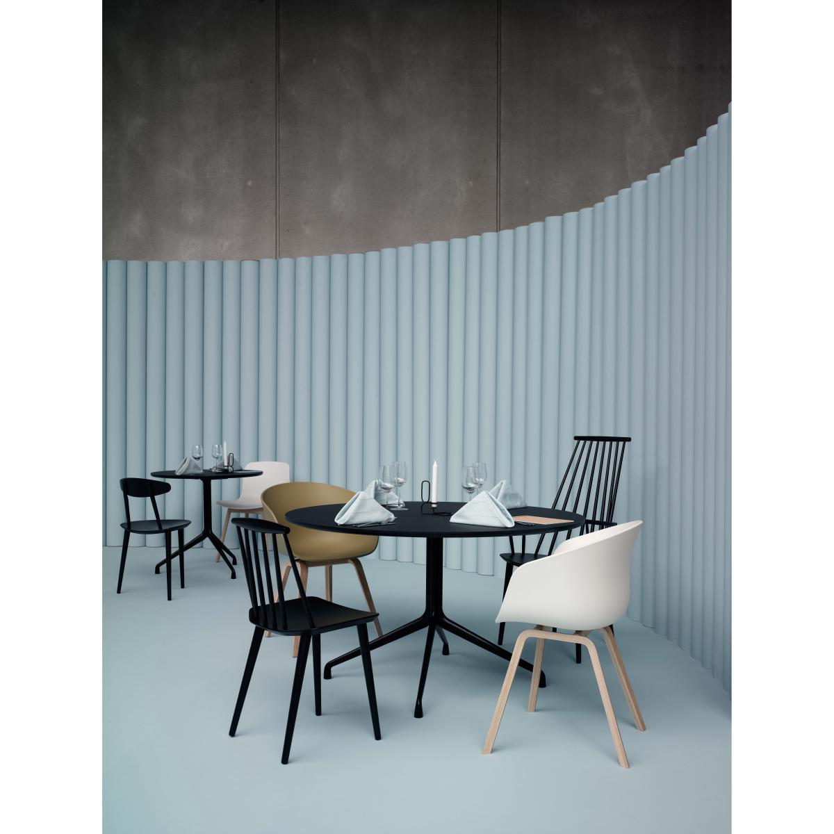 The About series is HAY's most versatile furniture series. It began with a chair and blossomed into a series with virtually unlimited potential. With the About series, Hee Welling has proven that a single strong idea can hold a wealth of development options. Today, the series includes dining and conference chairs, office chairs, bar stools, lounge chairs, tables, a foot stool and, as the latest addition, a sofa, and it is equally perfect for private and public settings. The About series is a true pragmatist, able to blend in or stand out, depending on the task it is assigned. Dramatize the silhouette with heavier upholstery, or opt for more subtle materials and colours. The many colour, upholstery and frame options are a particularly strong feature that allows you to tweak the design without compromising the basic concept.