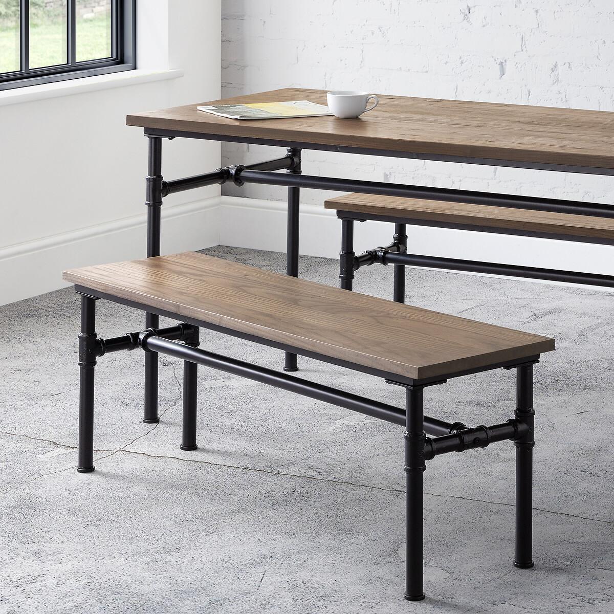 Made from solid elm wood in a mocha finish, the Abraham dining bench creates an industrial look whilst beautifully showing off the natural wood grain. Finished with powder-coated steel legs in a pipework style, it's perfect for the kitchen or dining room, or even as extra seating in the hallway. Product Details • Seats 2 • Solid elm wood table top with natural wood grain • Powder coated steel legs • Assembly required • Fixings included • 12 month manufacterers guarantee. Product Composition - 90% Solid elm Wood & 10%Powder Coated Steel. Product Dimensions - 35 cm x120 cm x44 cm , Weight - 13 KGSeat Height - 44 cm Package Dimensions - 124 cm x 38 cm x 11 cm, Weight 15 kg. Please note: this product cannot be be delivered to all Offshore Islands Northern Ireland or Republic of Ireland. This product will be dispatched by one of our trusted suppliers. You’ll be contacted by their selected courier about your delivery.