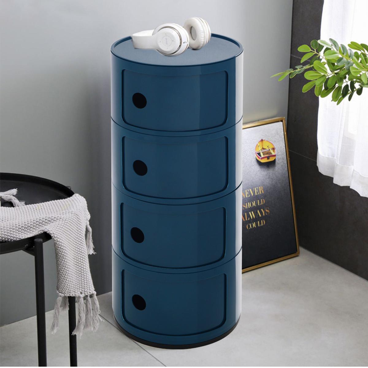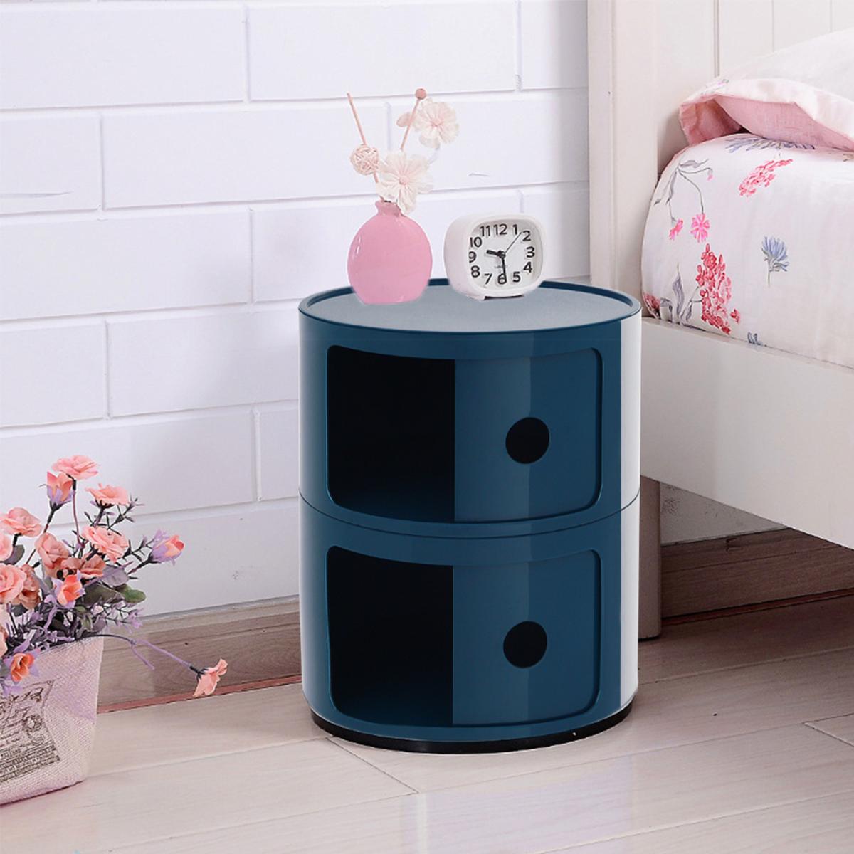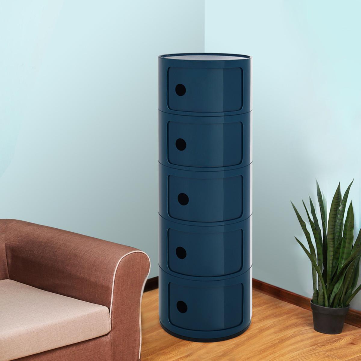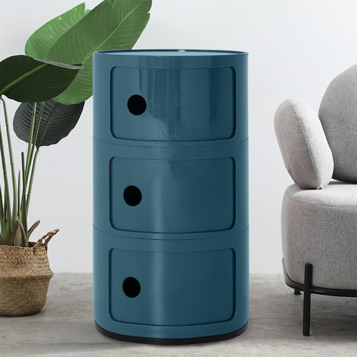 I love this blue round storage unit for its playful yet sleek design, making it a versatile addition to various interiors. It works particularly well in contemporary spaces or colour-pop schemes, where its bold hue can act as a statement piece. Practical styling tips include placing it in a children’s bedroom or dressing area for added organisation, or using it as a side accent in a minimal living room to inject a touch of colour. Its compact, rounded shape makes it easy to incorporate into tighter spaces, and it’s perfect for storing small items, keeping clutter out of sight while adding a fun, modern touch to the overall look.