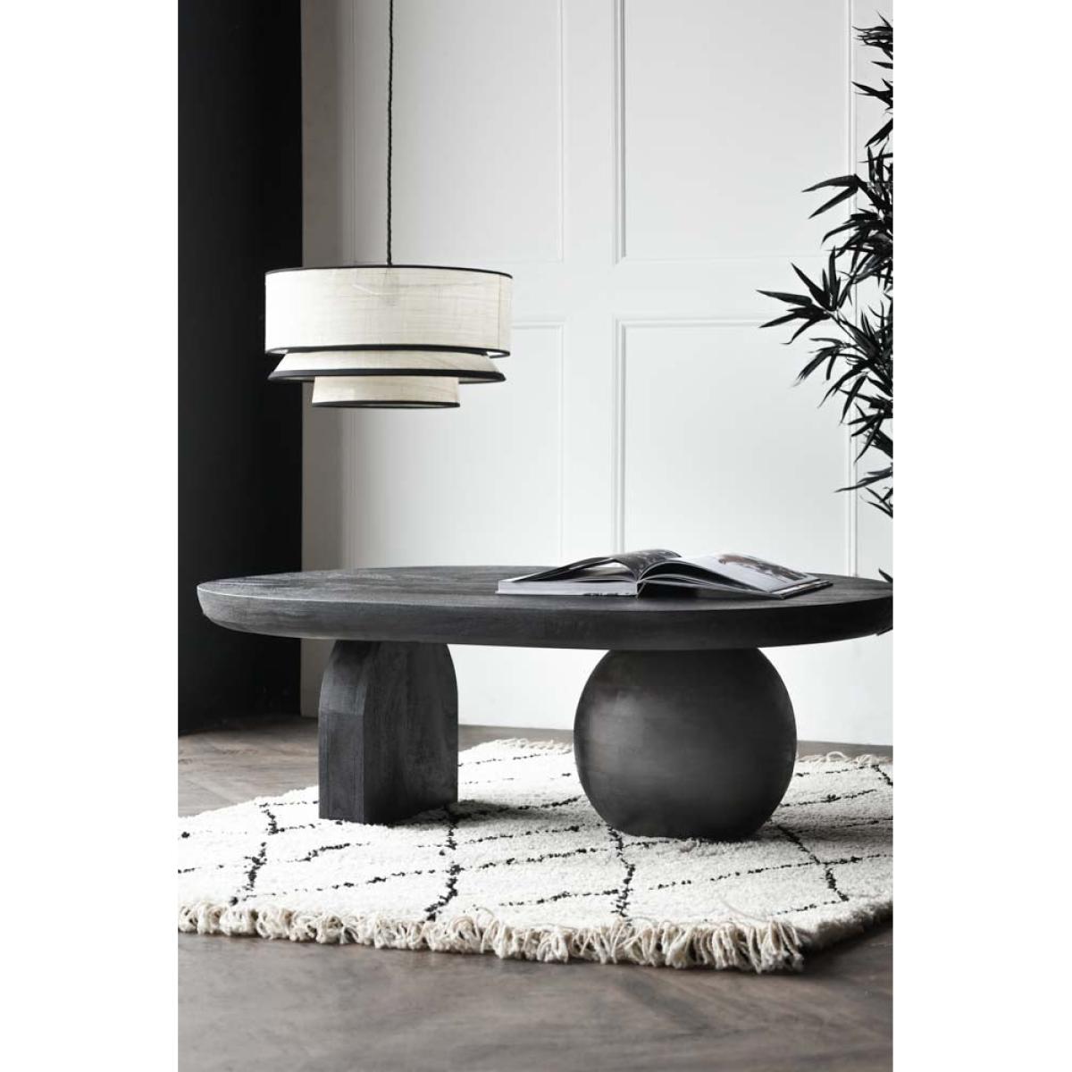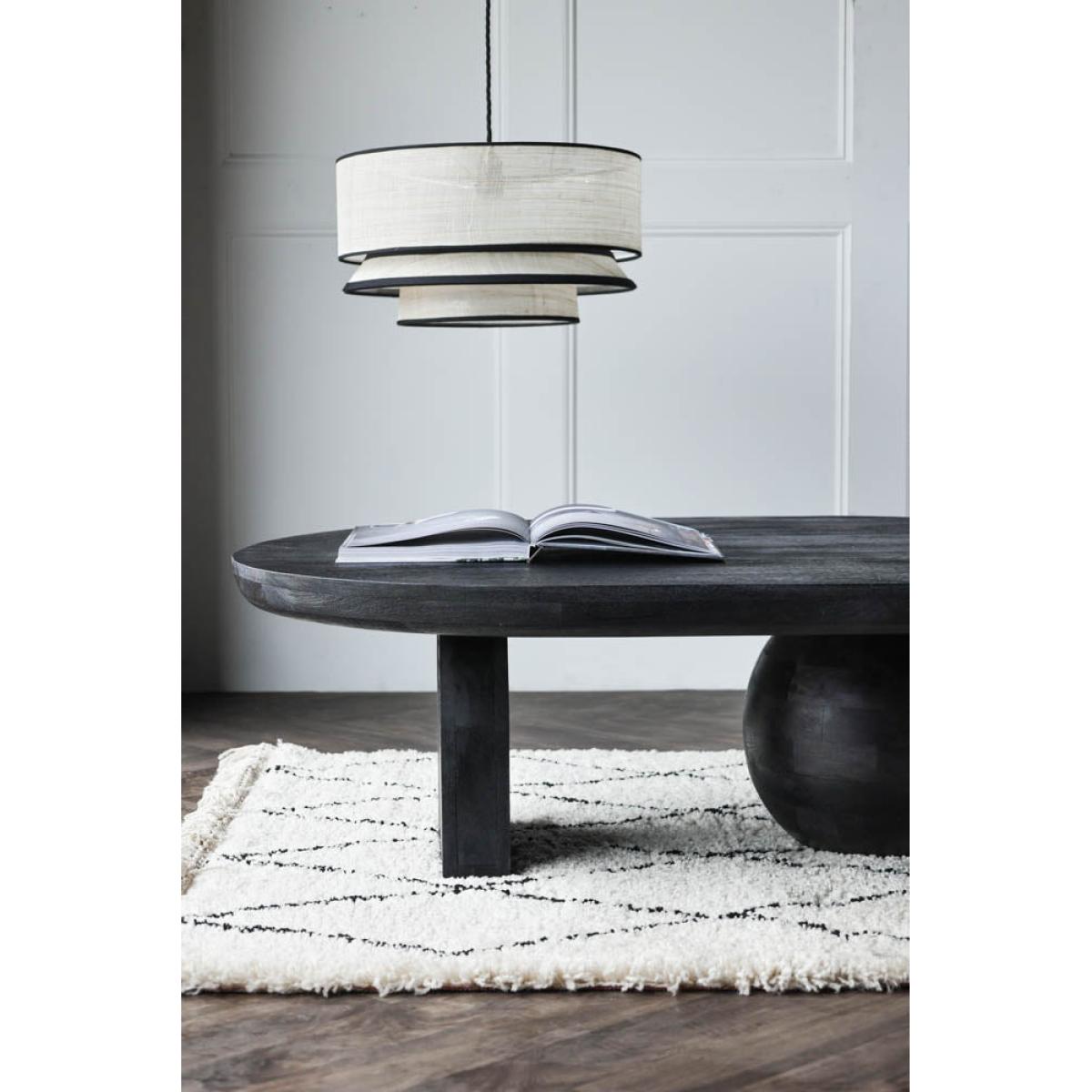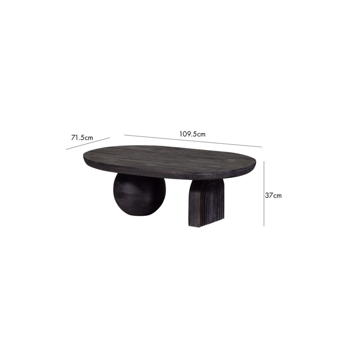 The Abstract Black Mango Wood Coffee Table is modern interior design at its best. A beautiful oval coffee table made from textured mango wood, the chunky wooden tabletop is supported by abstract legs that celebrate curves with both a globe and arch shape. A statement piece of furniture with effortless, Americana-cool, this bold black coffee table wouldn’t look amiss in Lenny Kravitz’s iconic Brazilian Fazenda - if you haven’t seen the AD tour of his home yet, grab a cup of tea and check it out ASAP! With a black finish that allows the unique grain of the mango wood material to shine through, this coffee table looks gorgeous in ultra-modern interiors and cosy spaces that balance modern design with rich, natural textures. A scene-stealing design that needs little-to-no styling to make a statement, simply pair it with your favourite coffee table books to complete the look. - Modern black wood coffee table - Measures: H37cm x W109.5cm x D71.5cm - Made from mango wood - Wipe clean using a slightly damp, clean cloth