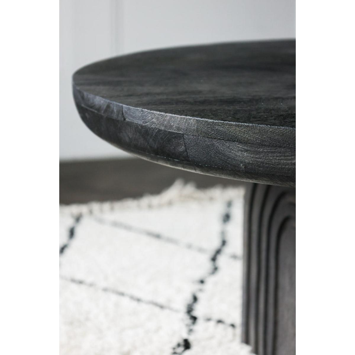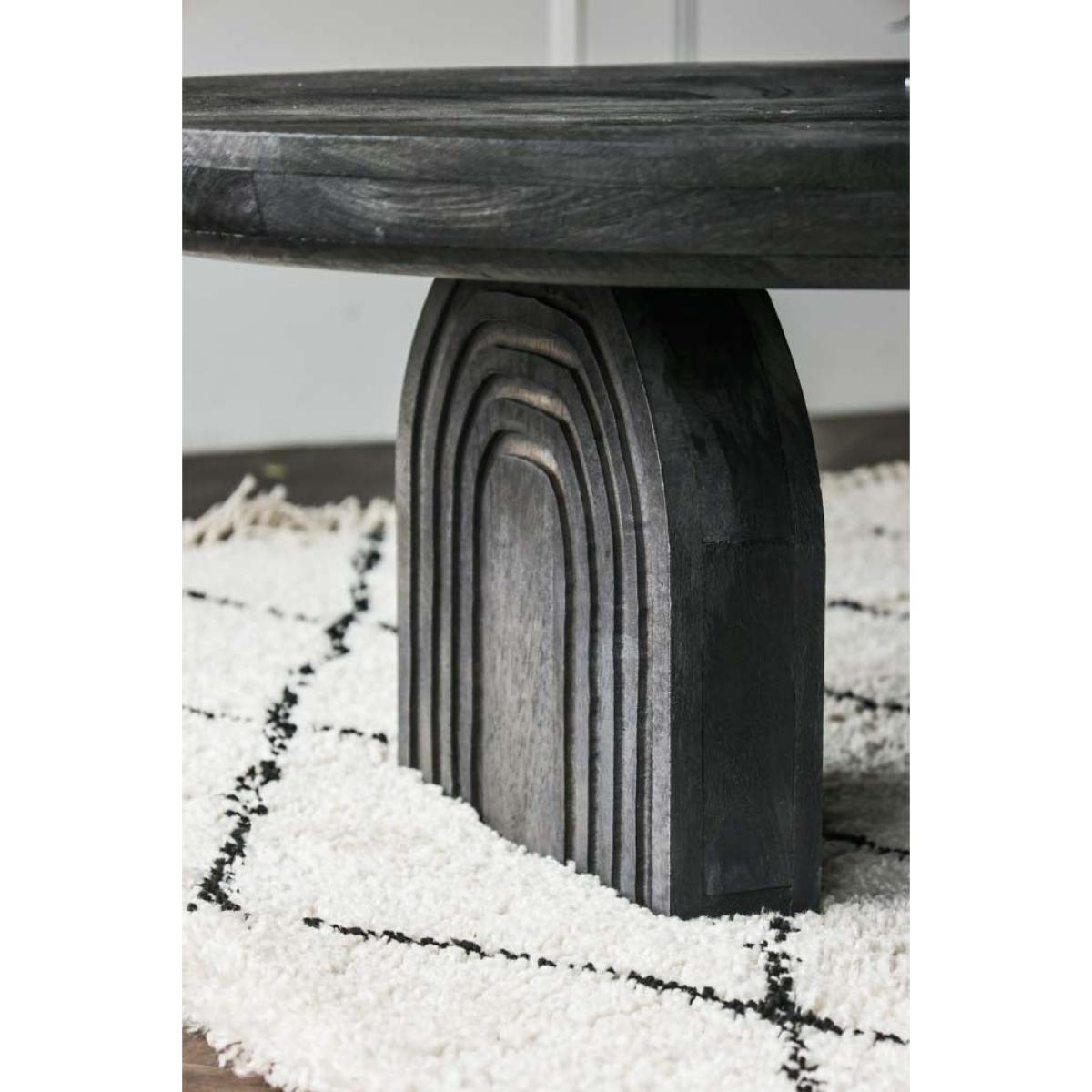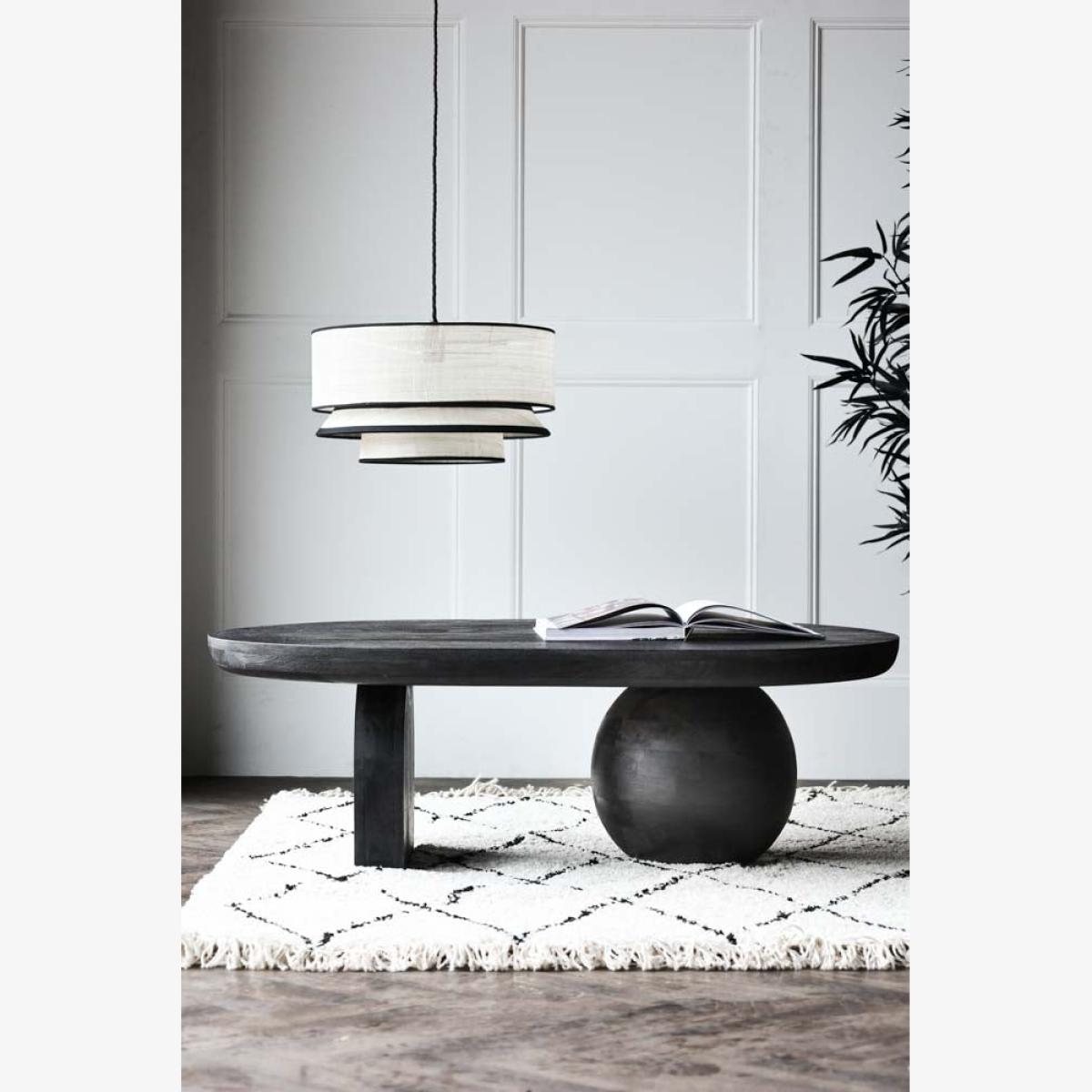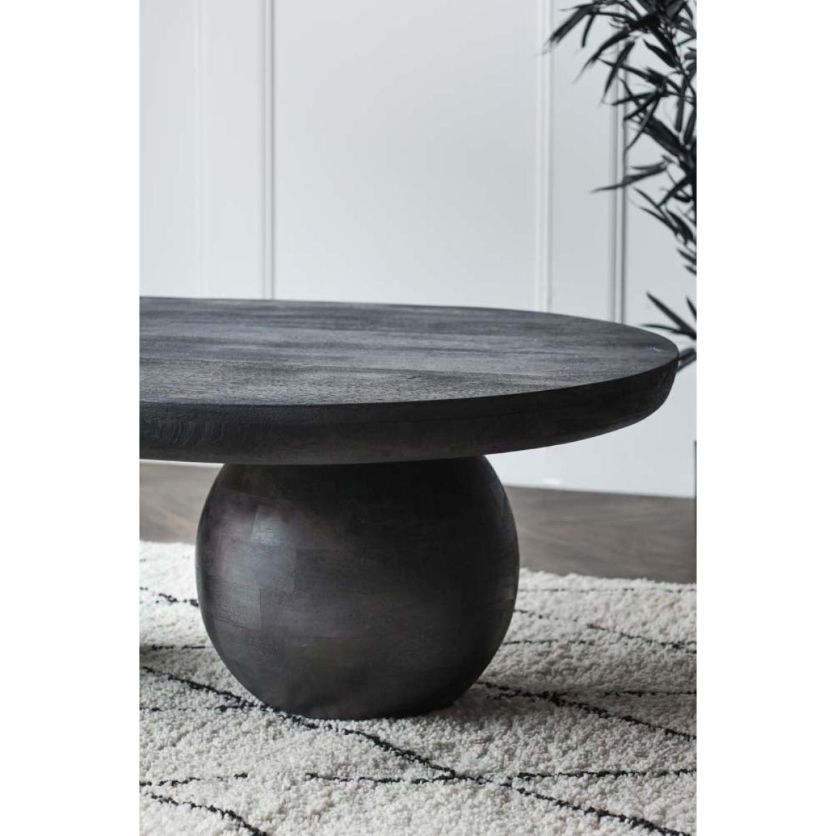 The Abstract Black Mango Wood Coffee Table is modern interior design at its best. A beautiful oval coffee table made from textured mango wood, the chunky wooden tabletop is supported by abstract legs that celebrate curves with both a globe and arch shape. A statement piece of furniture with effortless, Americana-cool, this bold black coffee table wouldn’t look amiss in Lenny Kravitz’s iconic Brazilian Fazenda - if you haven’t seen the AD tour of his home yet, grab a cup of tea and check it out ASAP! With a black finish that allows the unique grain of the mango wood material to shine through, this coffee table looks gorgeous in ultra-modern interiors and cosy spaces that balance modern design with rich, natural textures. A scene-stealing design that needs little-to-no styling to make a statement, simply pair it with your favourite coffee table books to complete the look. - Modern black wood coffee table - Measures: H37cm x W109.5cm x D71.5cm - Made from mango wood - Wipe clean using a slightly damp, clean cloth