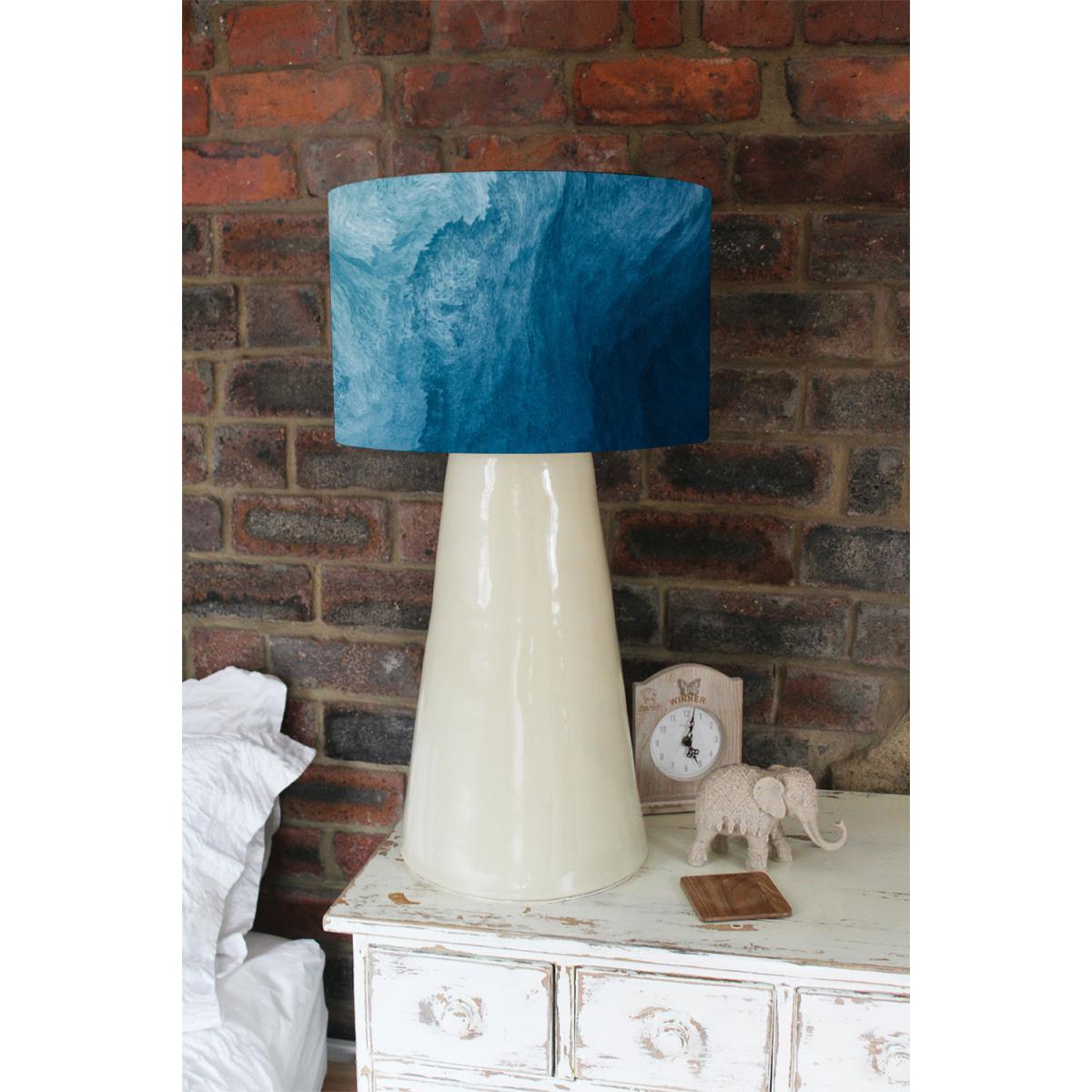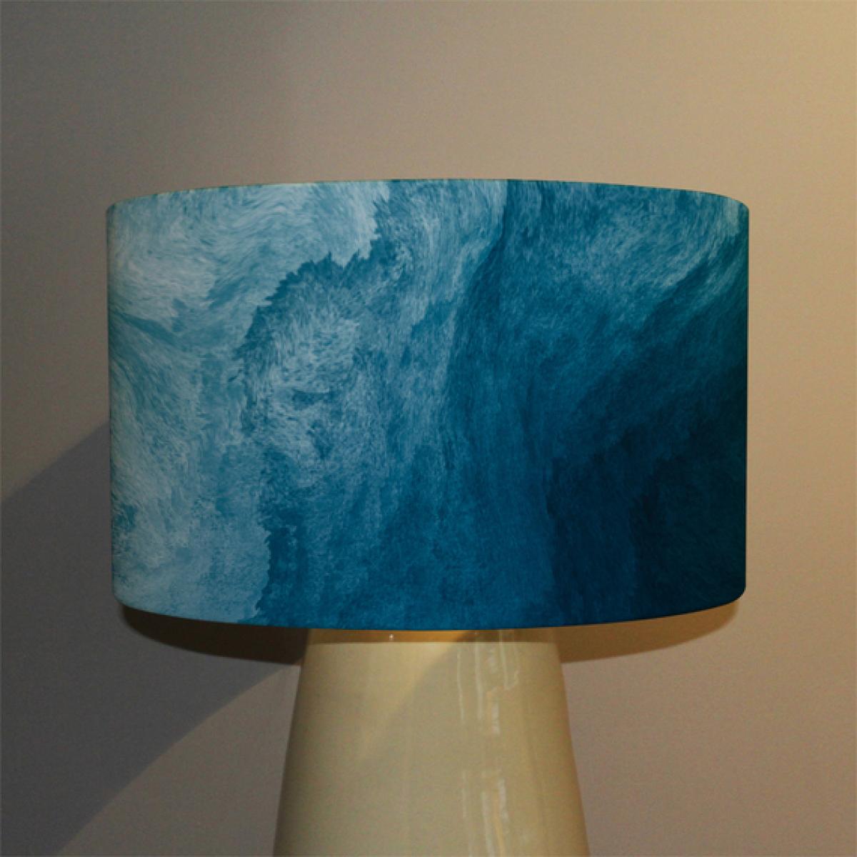 I love this blue liquid fluid designer lamp shade for adding a contemporary touch to a variety of interiors. Its abstract design and vibrant blue colour make it particularly effective in modern, minimalist spaces or eclectic schemes where a statement piece is needed. The size works well on both ceiling fittings and pendant lights, making it versatile for living rooms, dining areas, or even bedrooms. When styling, consider pairing it with neutral walls or sleek metallic fixtures to really let the shade stand out. Keep the surrounding decor simple to allow its artistic, flowing pattern to become a focal point, and opt for warm or neutral lighting to enhance its colour depth without overpowering the space.
