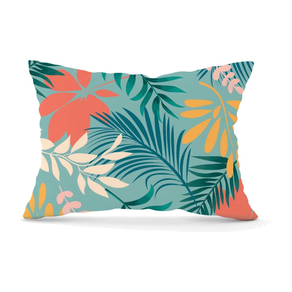 Abstract Bright Colorful Tropical Leaves Cushion - Green / 28cm