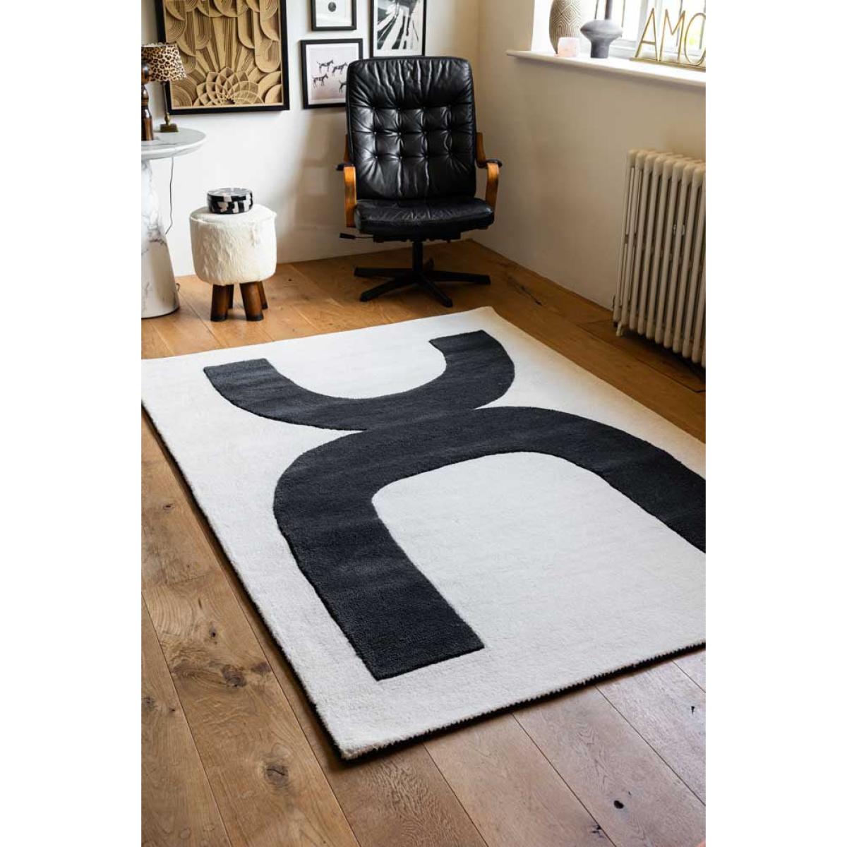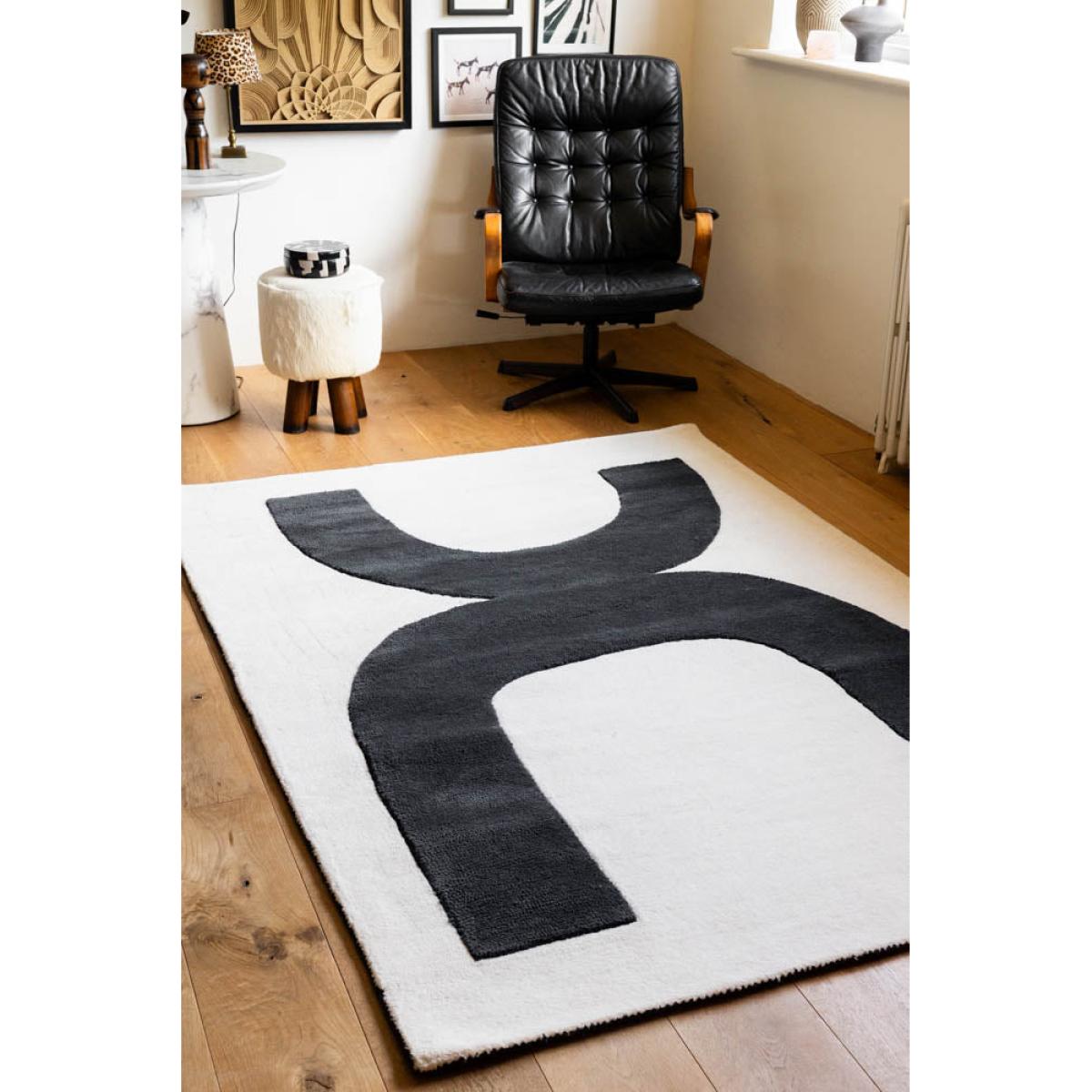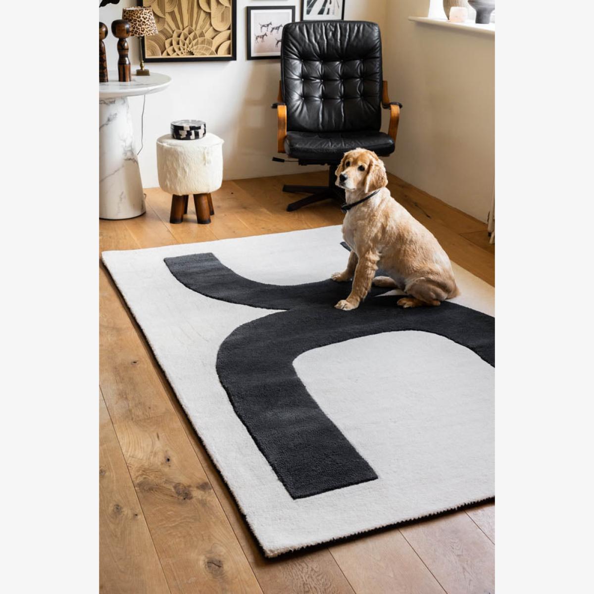 With its roots in the simple, geometrical shapes that characterise the art deco movement that was popular in the 1920s and ‘30s, this striking wool rug is the perfect piece with which to create a focal point in your living room, study or bedroom. Two crescents, picked out in darkest grey, create a pleasing symmetry and contrast against the pale background, which gives this both a minimalist and modern feel. Place in the centre of a smaller room and arrange furniture around it to create a focal point, or use it to ‘zone’ a bigger space by styling in one section of the room, with an armchair or love seat and statement plant, to create a sense of separation and pace. Heavily textured, with the satisfyingly chunky feel characteristic of wool, this is an investment piece that you’ll enjoy for years to come. - Abstract Canvas Rug - Material: Wool- Available in three sizes: 120cm x 170cm; 160cm x 230cm; 200cm x 290cm