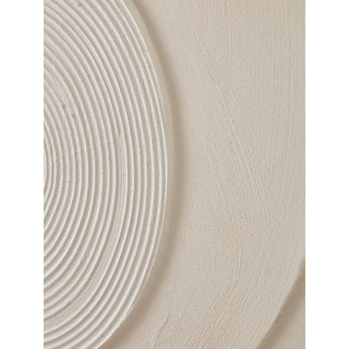 Projecting restfulness and calm, our Abstract Circles Canvas features interlocking circles in a variety of textures all in one tonal shade of warm white for a serene addition to your walls. The three dimensional surface will create a sense of movement with changes in light to elevate a neutral interior.