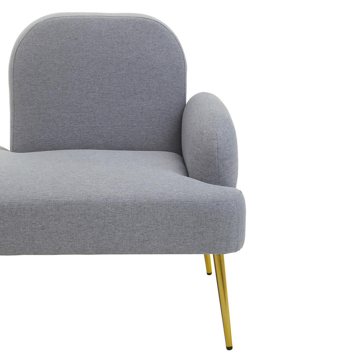 A sleek chaise lounge with on-trend curving arms and backrest perfect for any retro inspired interior. Product details Firm comfort Gold metal legs. Linen upholstery. Clean with a soft dry cloth Assembly required Product Composition - Linen, Wood, Metal. Product Dimensions - 75 cm x 124 cm x 90 cm , Weight - 18 KGSeat height: 49cm. Seat width between arms: 110cm. Seat depth: 53cm. Back height from seat: 41cm. Back height from floor: 86cm. Arm height from seat: 19cm. Clearance to floor (leg height): 30cm. Package Dimensions - 125 cm x 78 cm x 64 cm, Weight 23.4 kg. This product will be dispatched by one of our trusted suppliers. You’ll be contacted by their selected courier about your delivery. PREMI01