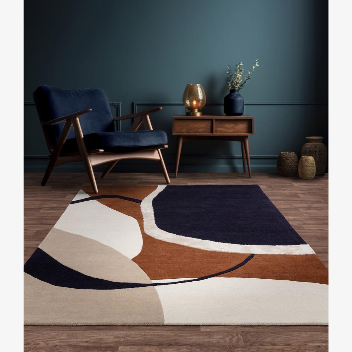 I love how the abstract shape rug adds a contemporary yet tactile element to any space. Its carved detail and rich wool texture make it a striking focal point while offering durability underfoot. It's versatile and works well in modern and mid-century interiors, especially with clean lines and neutral tones, as it provides an artistic touch without overwhelming. For styling tips, consider pairing it with minimal furniture in complementary colours, and use it to define seating areas or create visual interest in open-plan rooms. Because it's 100% wool, it’s both warm and practical-ideal for adding comfort and style to living rooms or bedrooms.