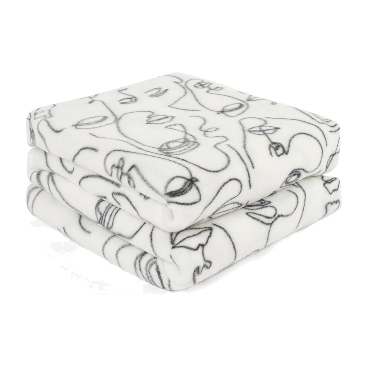 Abstract Faces Blanket Throw - White