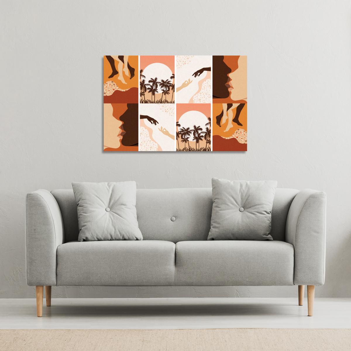 I love this abstract floral collages print for its vibrant, warm tones and captivating landscape imagery, making it a versatile statement piece. It works well in contemporary or boho interiors, especially in spaces where colour and artistic flair are welcome. For styling, place it above a neutral sofa or sideboard to let the artwork be the focal point; pairing with simple, understated accessories keeps the look balanced. Given its size, it’s ideal for a medium to large wall, and layering with other textures or smaller prints can add depth without overwhelming the space. This piece lends itself particularly well to lively living rooms or bedrooms seeking a splash of colour and visual interest.