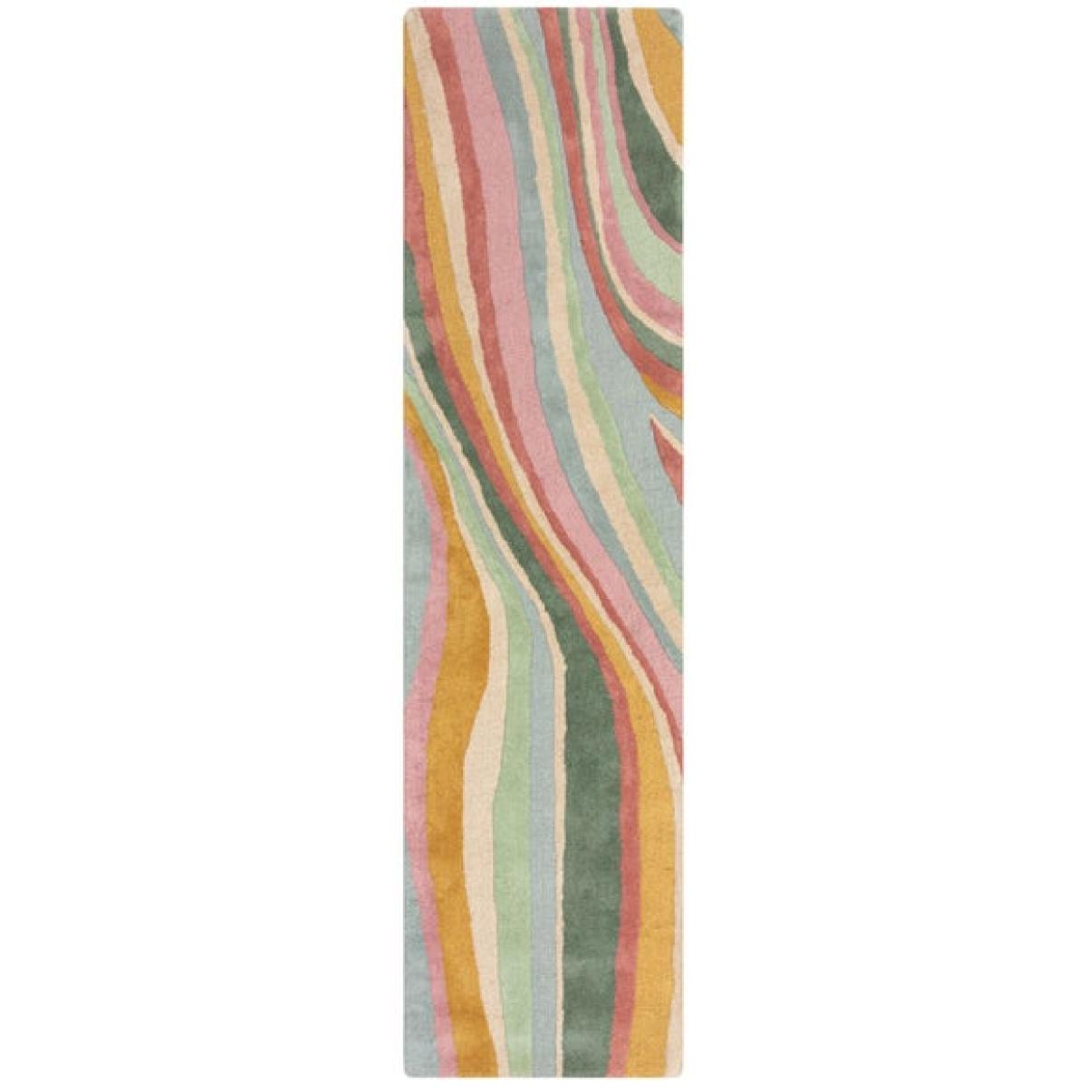 * 100% Wool * Organic Design * Vibrant Colour Palette For a feeling of serenity in your living space, the Abstract Flow Wool Runner adds a touch of tranquillity. The mesmerising design has been expertly handcrafted from 100% wool in the perfect blend of loop stitching and high low pile. Both durable, and easy to style in a multitude of home decors. The rug pictured is: 60cm x 230cm. Care Instructions:Wool is a natural fibre, and shedding is normal for a long period. Unroll your rug and leave for 24 hours during first use. Maintain your Wool rug by vacuuming regularly with a nozzle attachment, this will reduce shedding over time. Cut any loose fibres with scissors, do not pull. For accidental spills blot immediately and spot clean with a damp white cloth, do not rub or over saturate the fibres to keep them soft and plush. Add an anti-slip underneath your rug to prevent slipping. Rotate every few months to prolong the life of your rug.