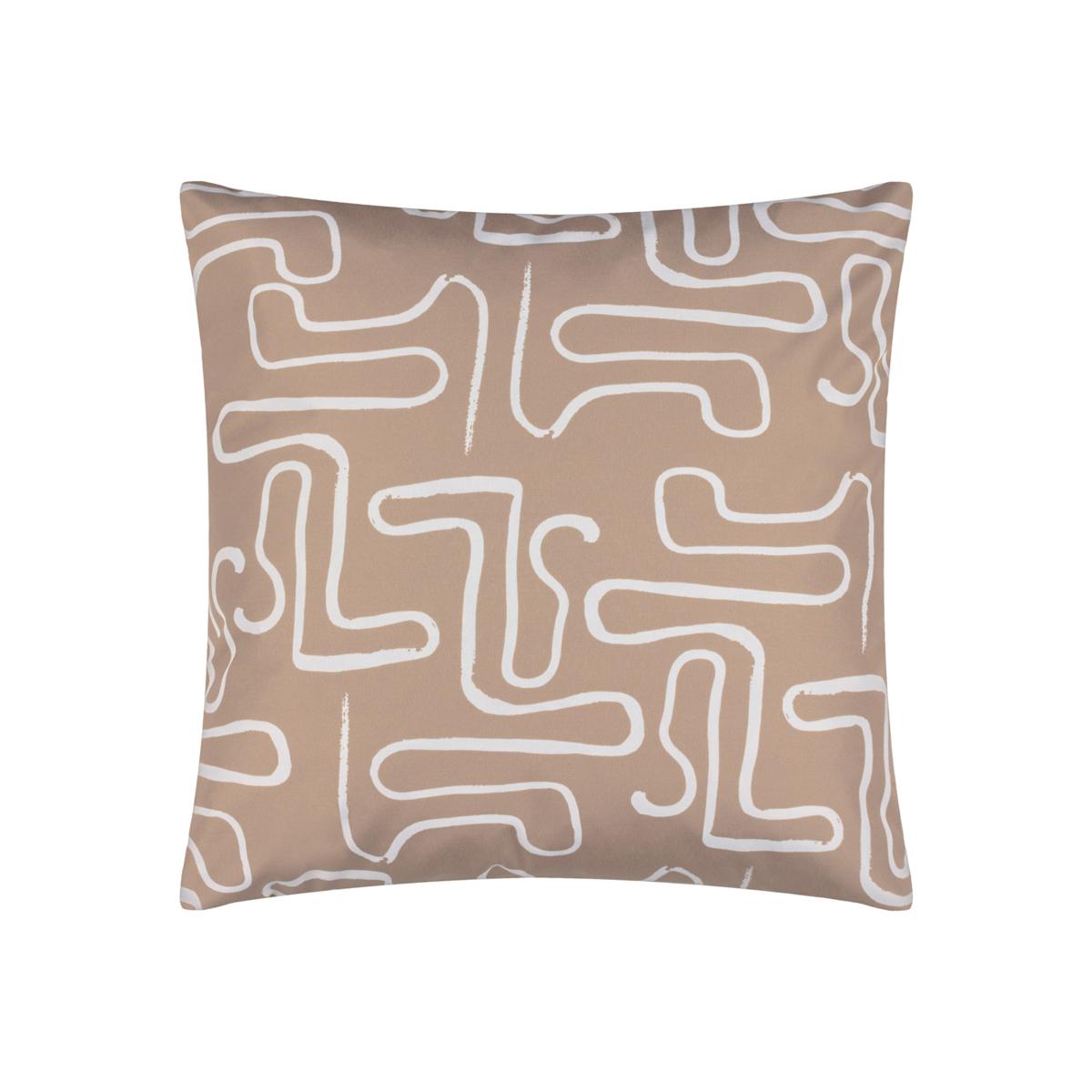 Featuring a printed swirling abstract geometric pattern in natural clay tones. Check out this printed abstract, modern geometric pattern, in natural clay tones which winds its way around the face of this UV, water resistant Polyester outdoor cushion. On the reverse it has the same pattern, but in inverted colours to give you a choice of two minimalist, on-trend designs. Either way, the Klay cushion looks amazing on your outdoor furniture and can even be matched with our Klay recycled outdoor rug, to add both pattern and texture to your patio, balcony or terrace.