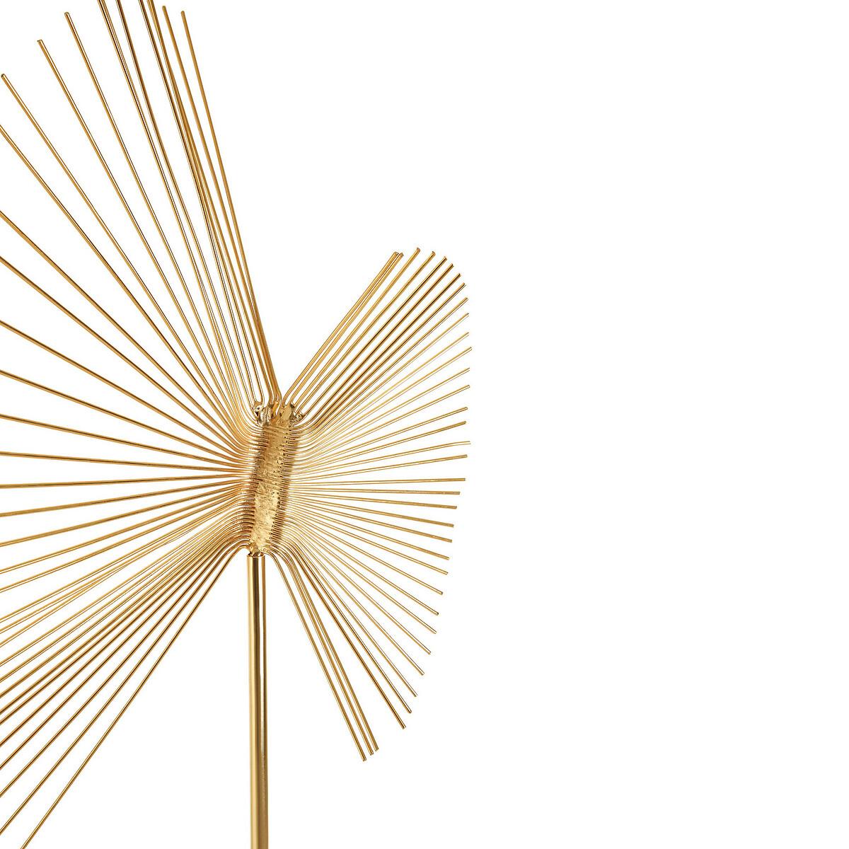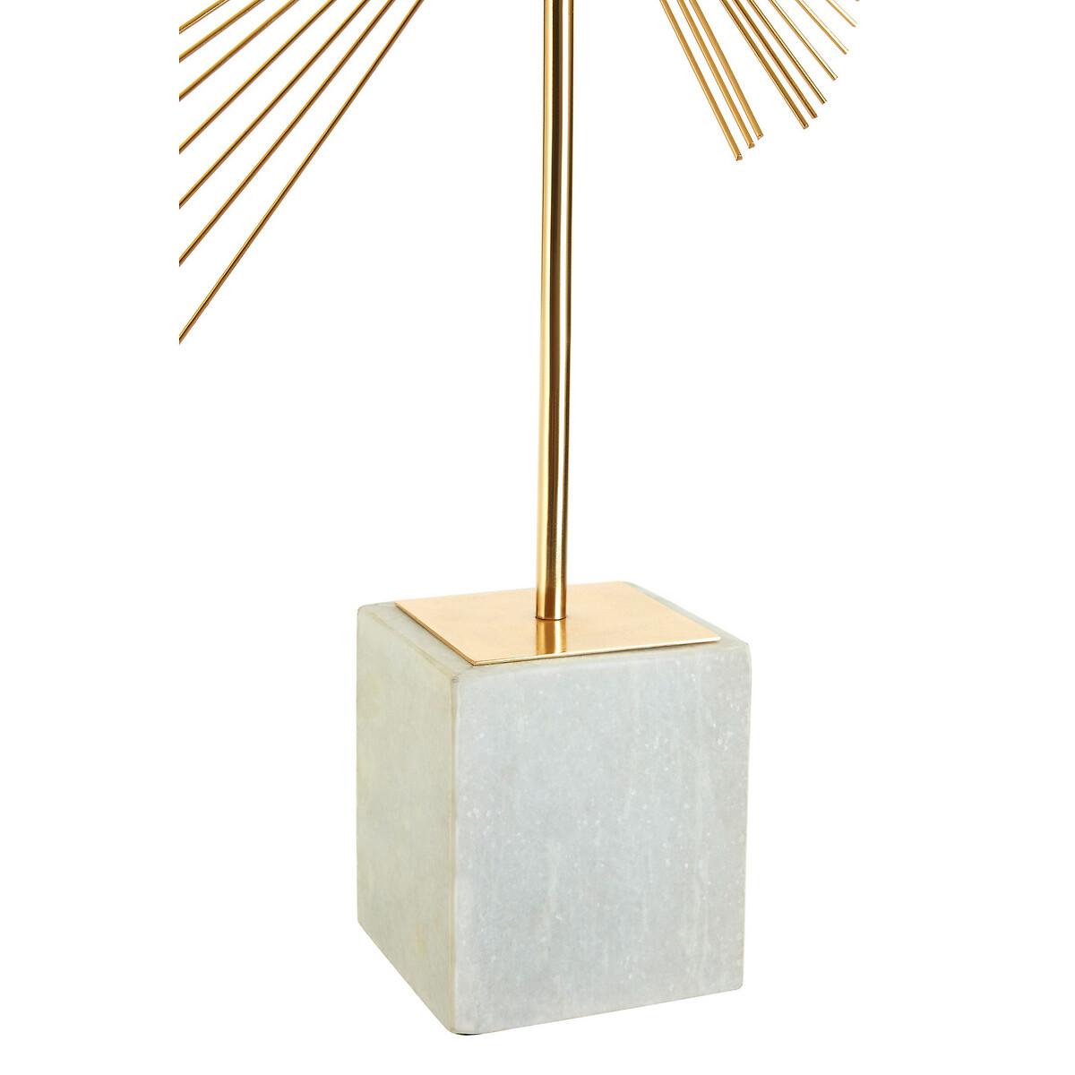 Made from iron, this abstract spiral sculpture combines sleek metal wires to form a fan-shaped design. The fanned out golden finish lines give a moving effect in a combination of classic and modern touch with its shades and design. This decorative piece is mounted on a white marble block base which lends it support and stability. This product will be dispatched by one of our trusted suppliers. You’ll be contacted by their selected courier about your delivery. PREMI01