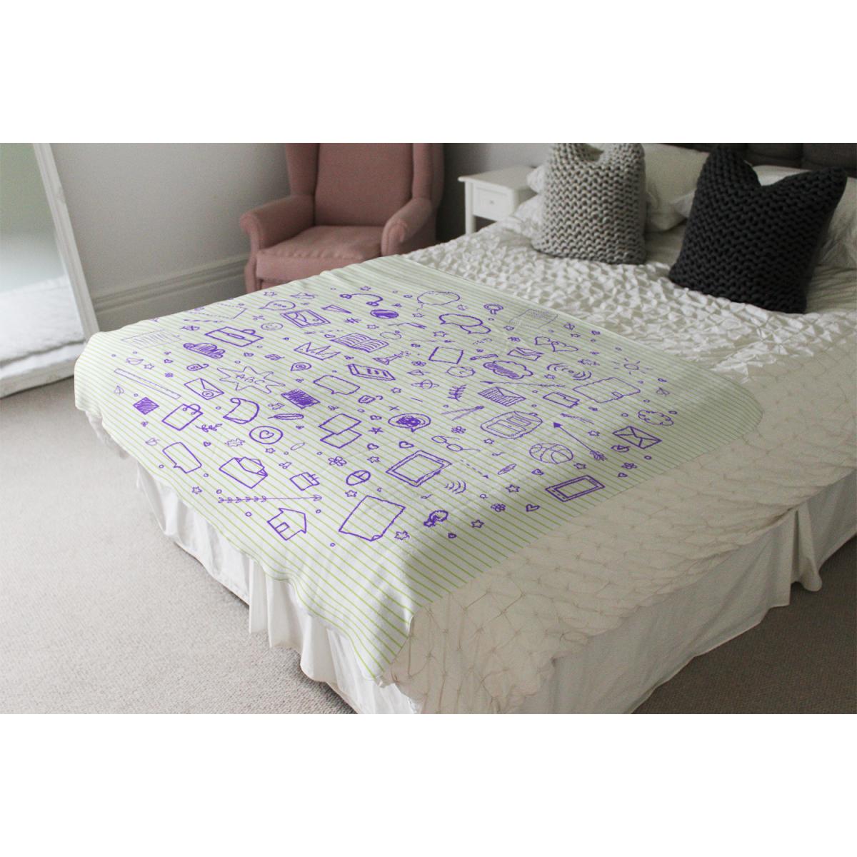 Abstract Line Pattern With School Supplies Blanket - Purple