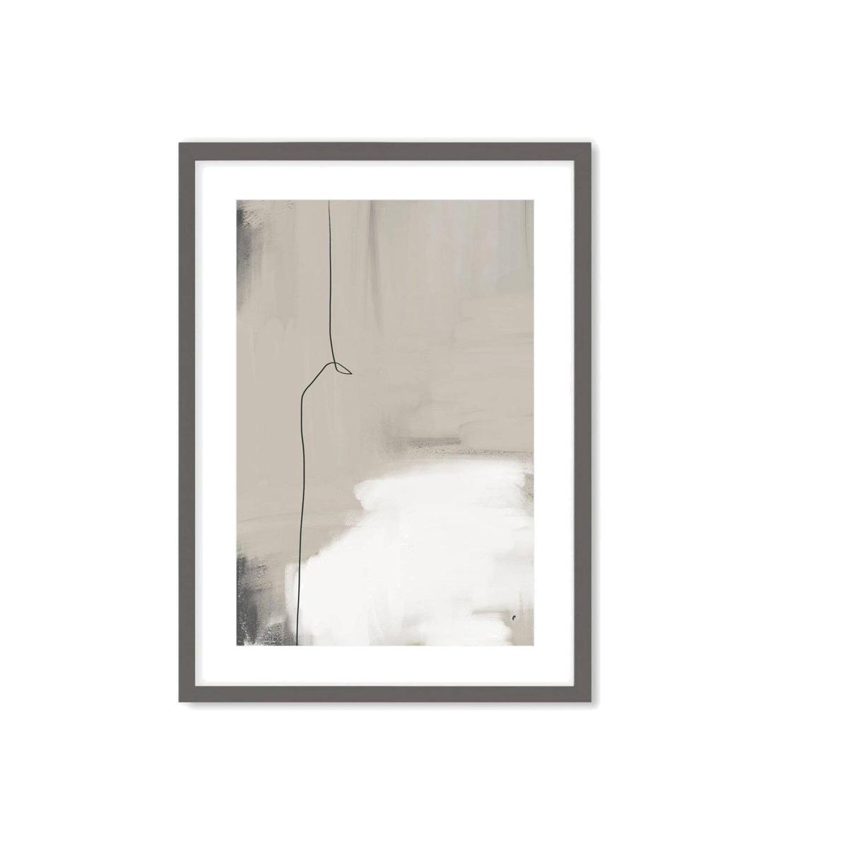 Dimensions W54x H74x D2 cmA contemporary framed abstract art print. This eye-catching design perfectly complements a variety of home interiors and will add a unique touch of style to any room in your home. Printed on fine art paper with excellent colour reproduction and fade resistance. The artwork comes framed and ready to hang in a solid wood frame with grey finish and a white mount included. Features. Ready to hang solid wood framed print Real glass front High quality fine art paper. Made using eco-friendly materials including wood from sustainable forests. Produced in the UKAssembly not required..