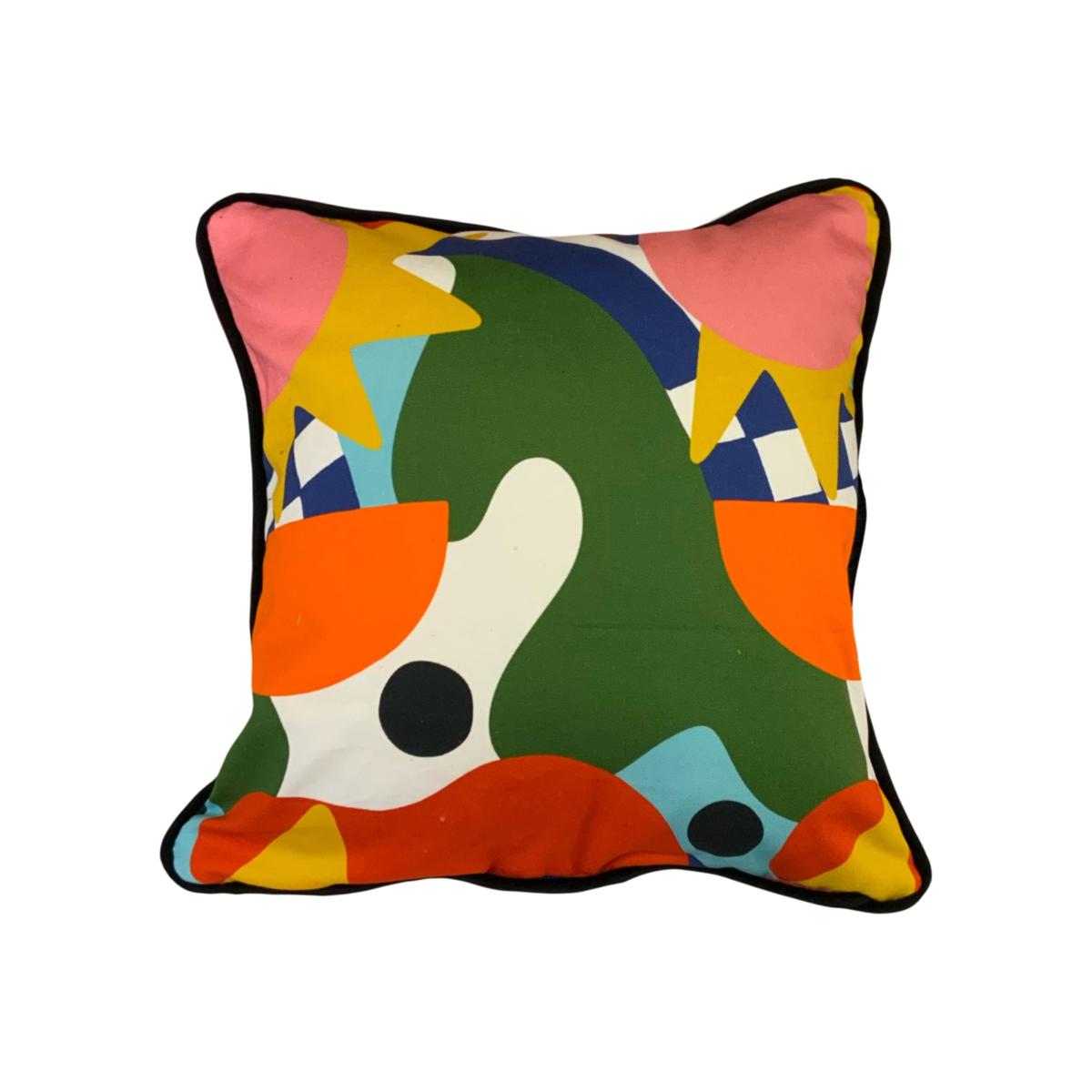 Elevate your home decor with our handmade Abstract Majorca cushion from The Neighbourhood Threat! Handcrafted with care and attention to detail in our Manchester studio, this cushion features a handmade velvet piped trim for added sophistication and style. When you choose our handmade cushion from The Neighbourhood Threat, you're supporting local makers and sustainable design practices. It's a unique and beautiful addition to any home, and the high-quality materials and production methods ensure that it's durable and long-lasting. This cushion comes filled with a hollowfibre inner.
