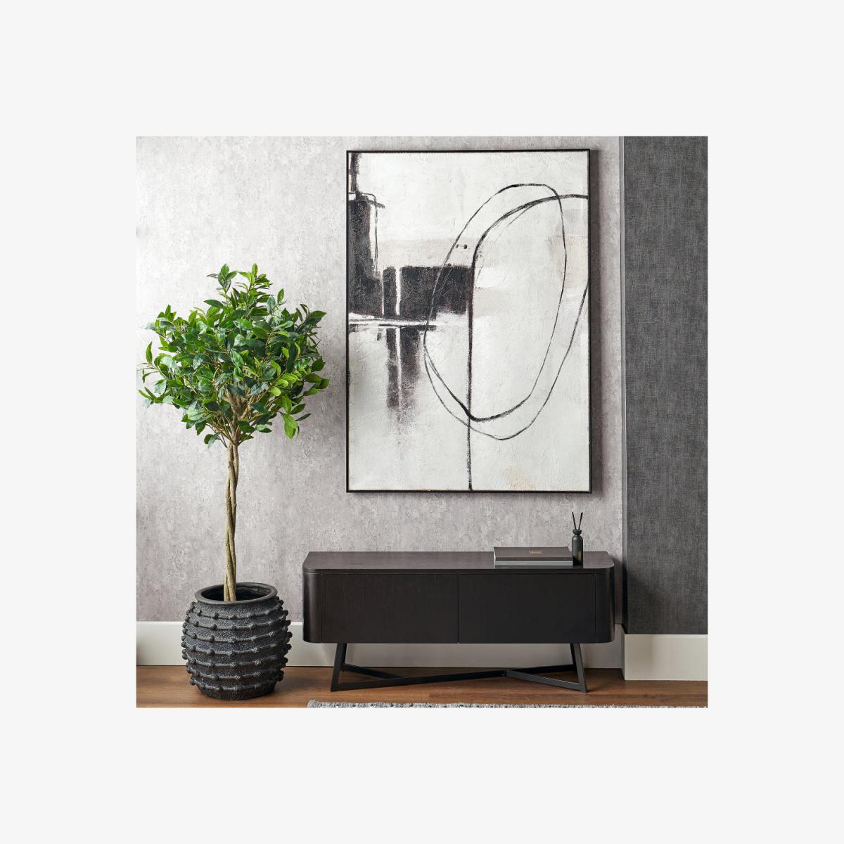 I love this black and white piece because its abstract design and monochrome palette make it incredibly versatile. It works well in modern, minimalist interiors, adding a sophisticated contrast without overpowering the space. You can pair it with other monochrome decor or pop it against colourful elements for added impact. Practical styling tips include positioning it above a console or sideboard for a polished look, or creating a gallery wall by combining it with other artworks. Its neutral tones make it a low-maintenance choice that will keep the room feeling stylish and cohesive for years to come.