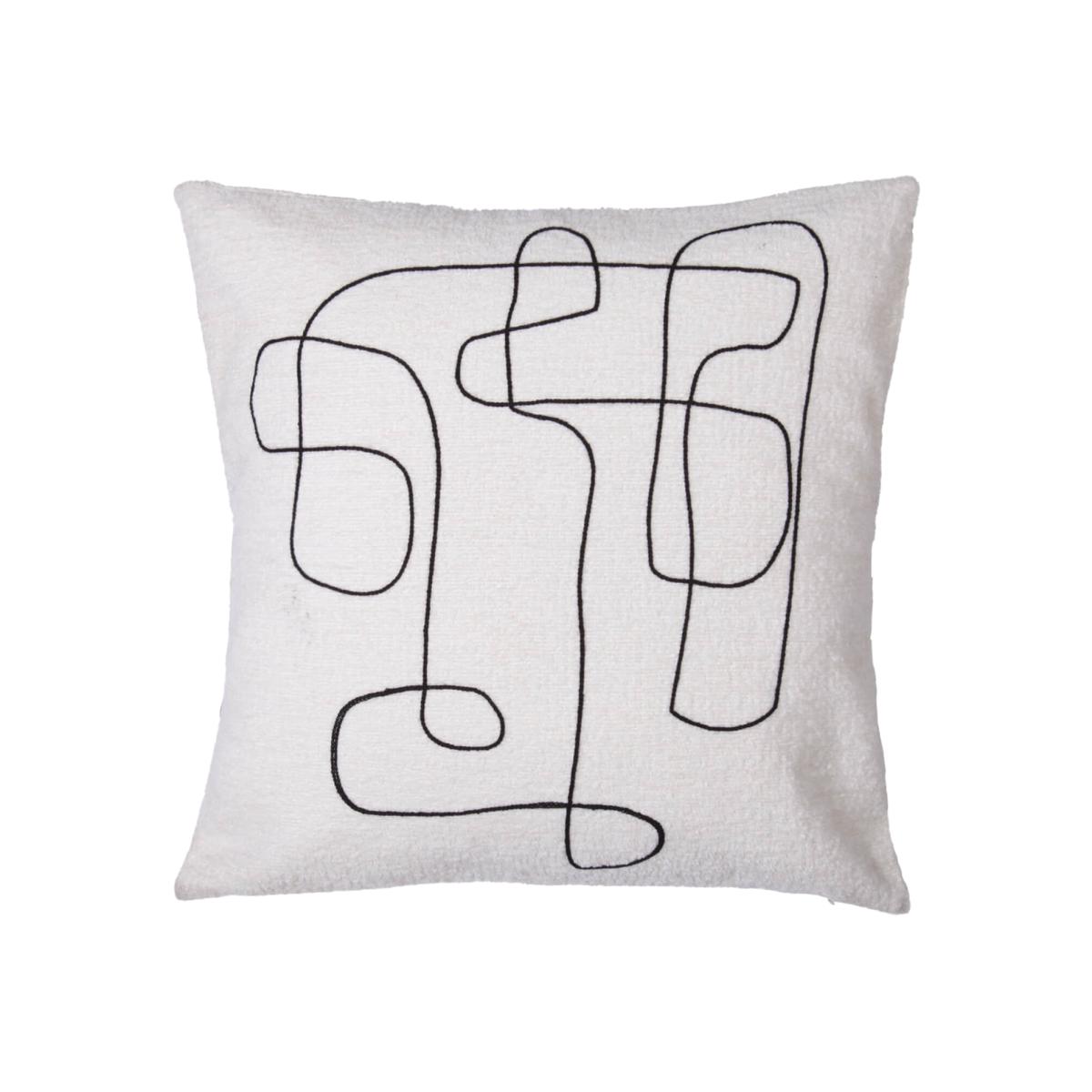 Bang on trend, bring a contemporary feel to your sofa with this minimalist abstract squiggle design. Embroidered on a soft chenille look fabric, this cushion feels as good as it looks.
